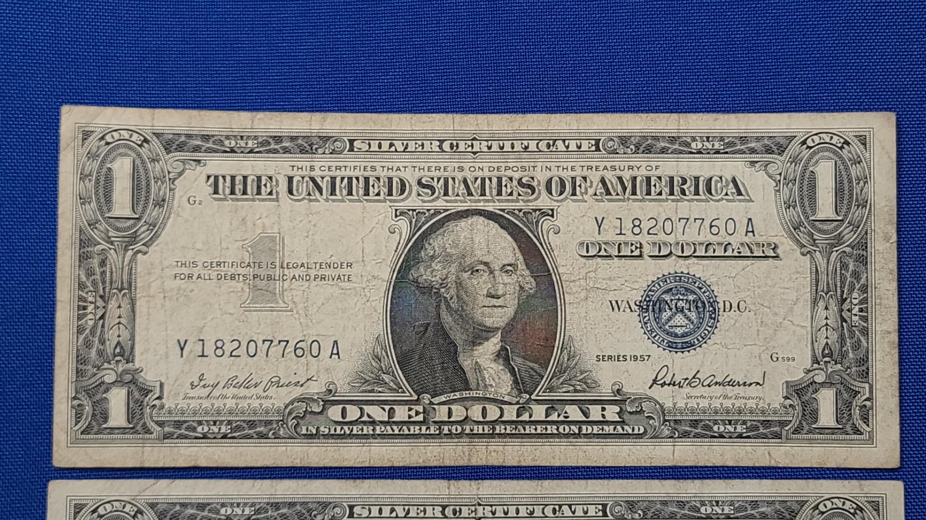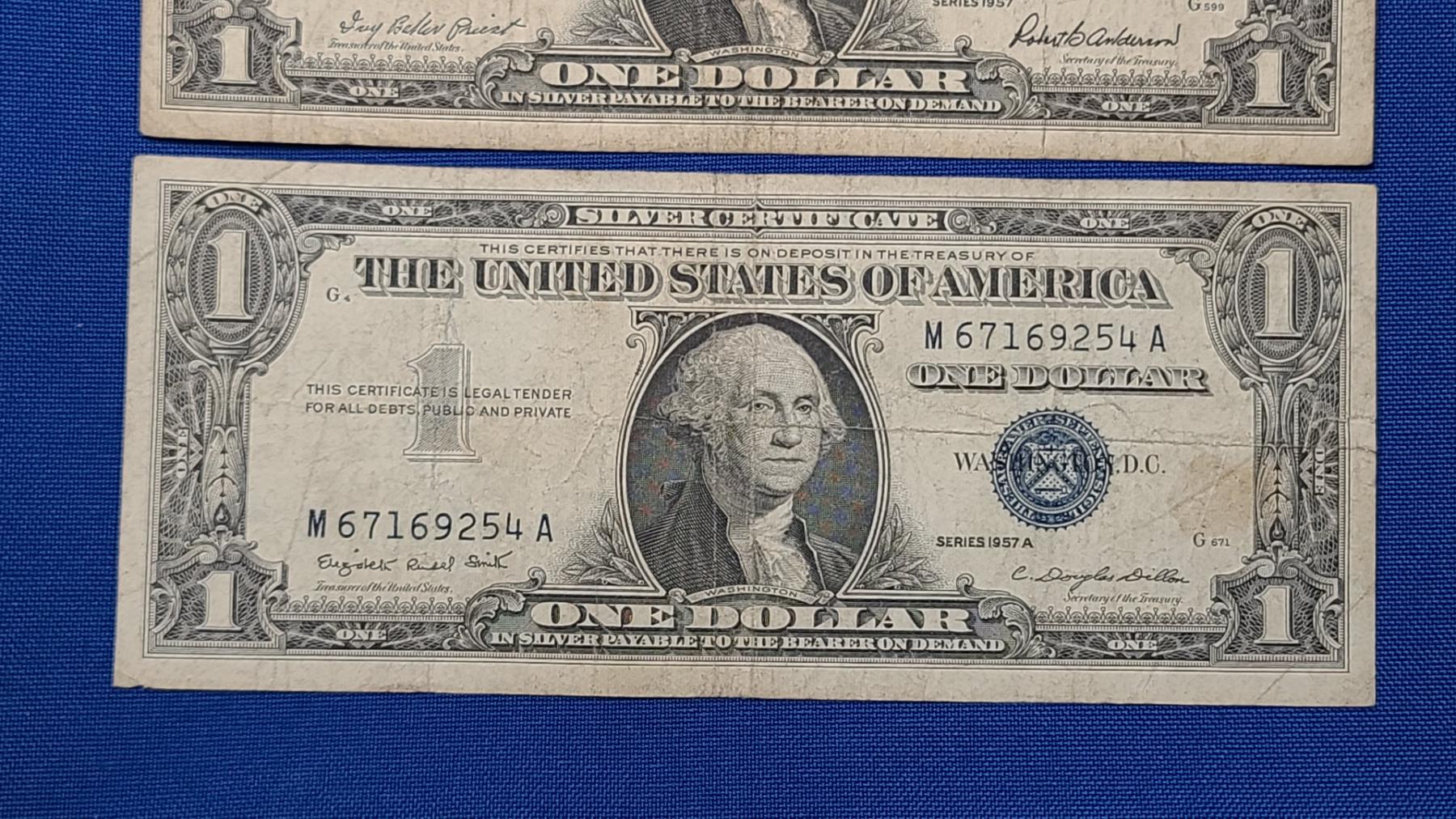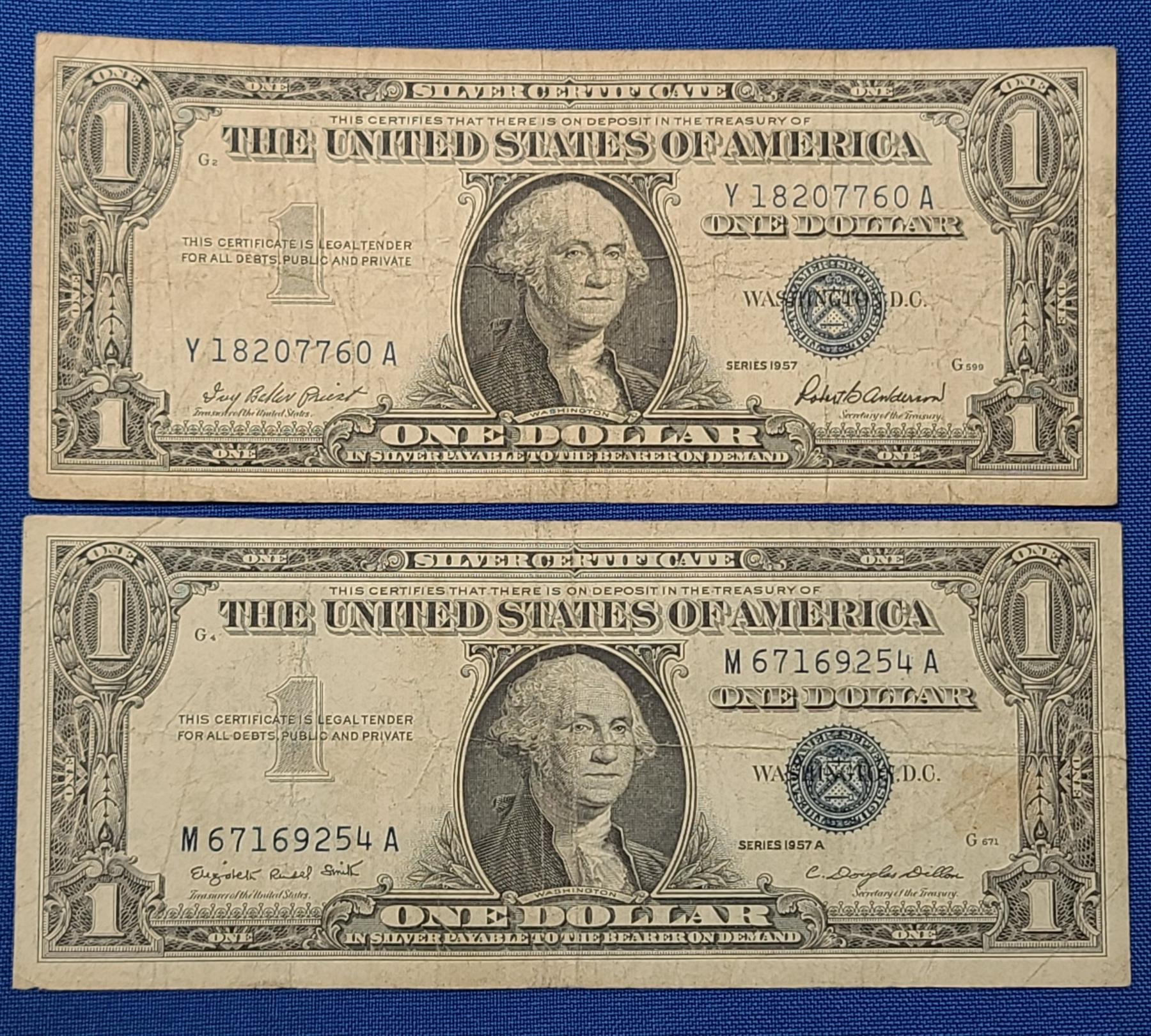 (2) United States $1 Silver Certificates - Series 1957/1957 A - Face Value: $2.00