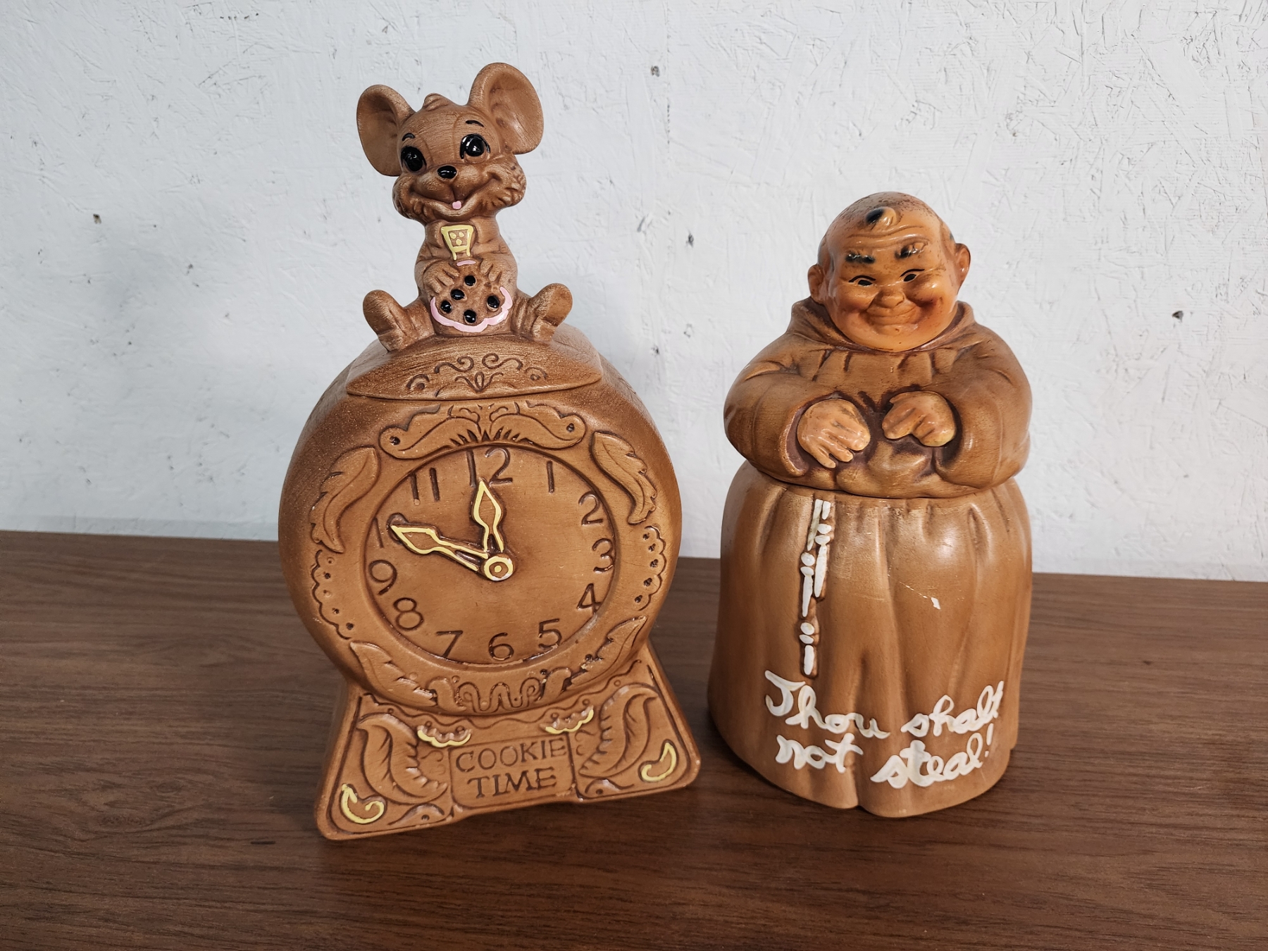 2 Vintage 1960's Cookie Jars - "Cookie Time" & "Thou Shall Not Steal" Approx. 14in Tall