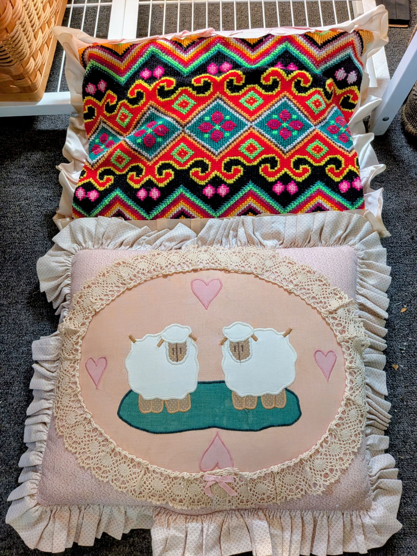2 Vintage Handmade Throw Pillows