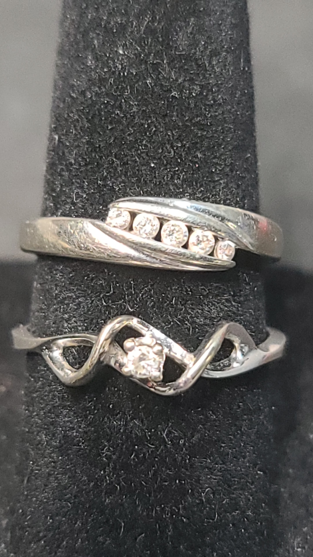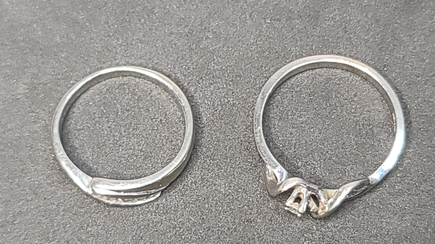 (2) Women's 10K White Gold Rings With Diamonds - Sizes 5.5 & 7 - Weight: 3.7g
