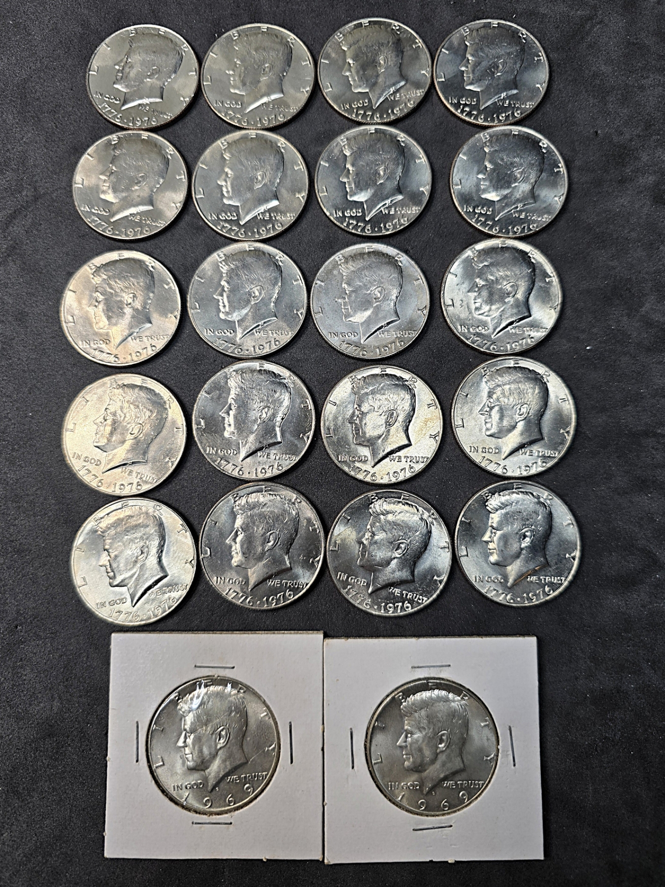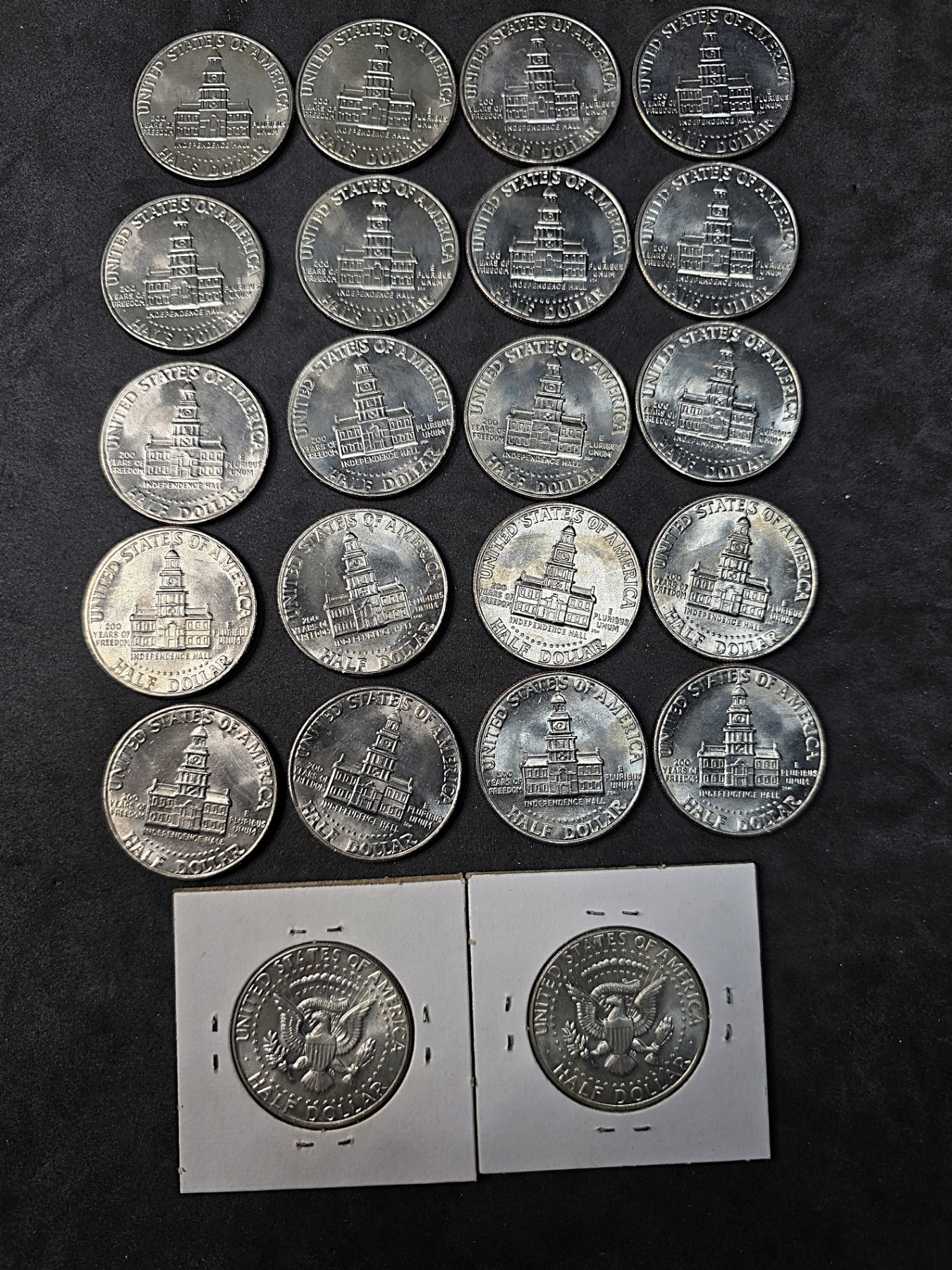 (20) Bicentennial Kennedy Halves and (2) 40% Silver Kennedy Halves - $11 FV
