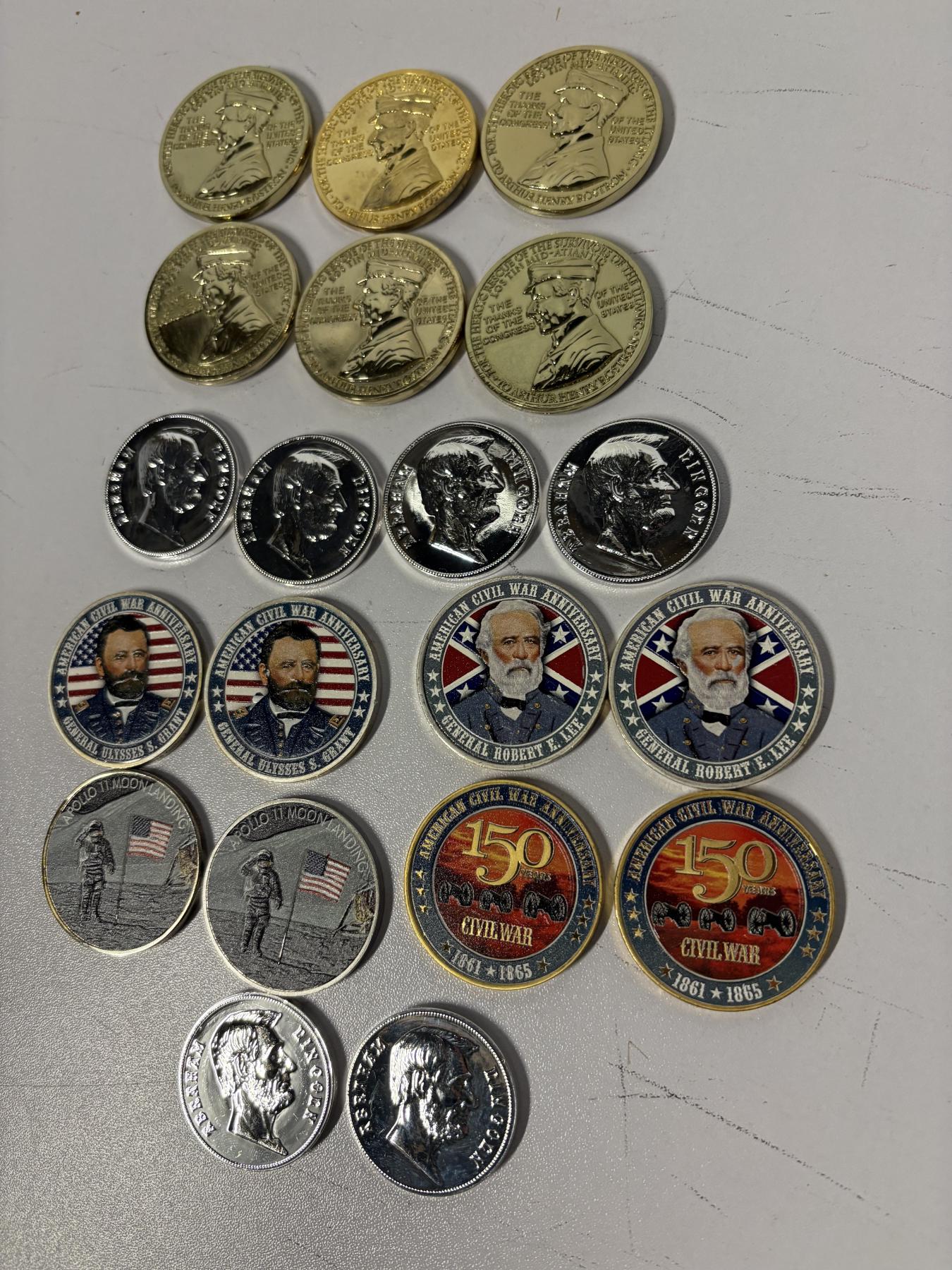20 Coins - Abraham Lincoln (6) - Arthur Henry Rostron (6) - Apollo 11 Moon Landing (2) - Ulysses S. Grant ( 2) - General Robert E. Lee (2) - American Civil War 150th Anniversary (2)