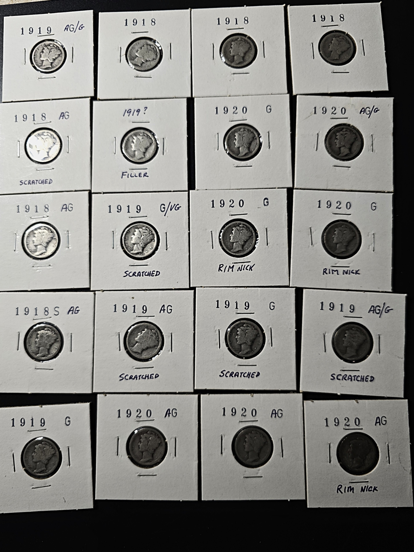 (20) Mercury Dimes 90% Silver $2.00 face value