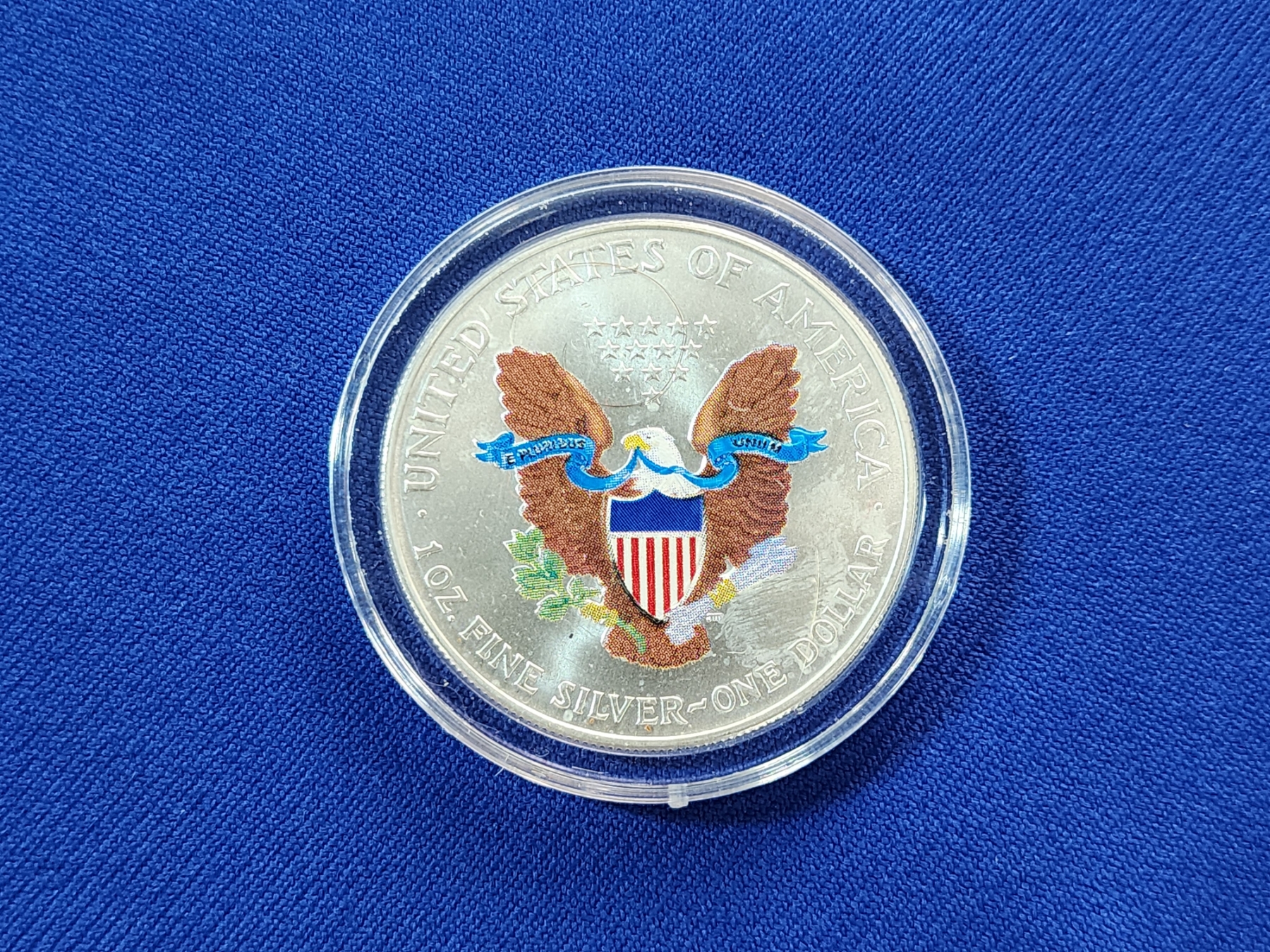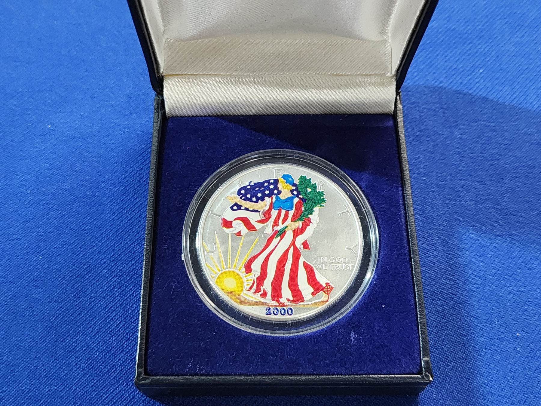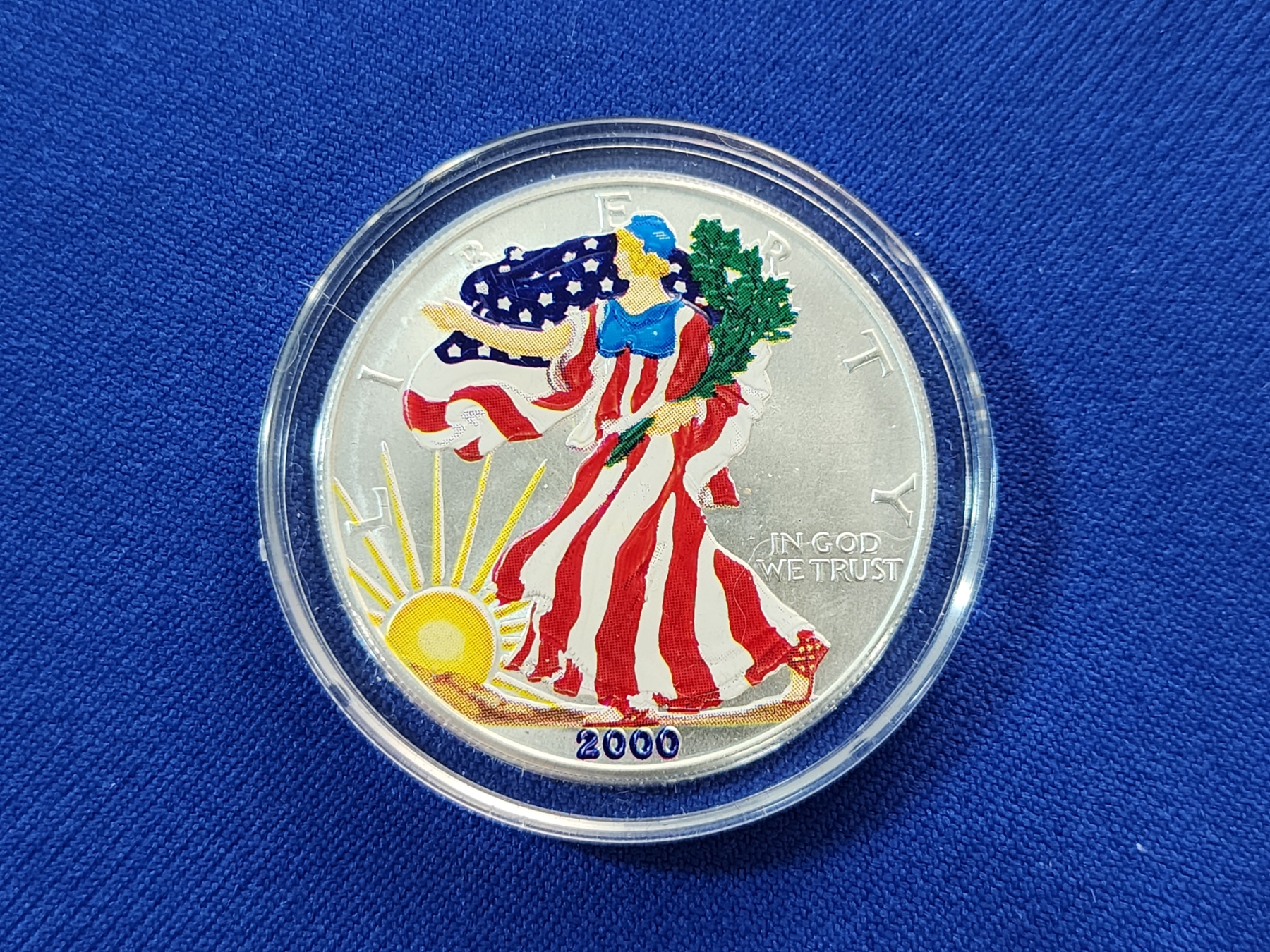 2000 Colorized American Silver Eagle - 1 Ounce .999 Fine Silver Coin - In Capsule & Display Box
