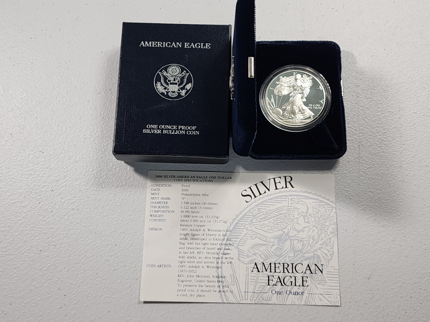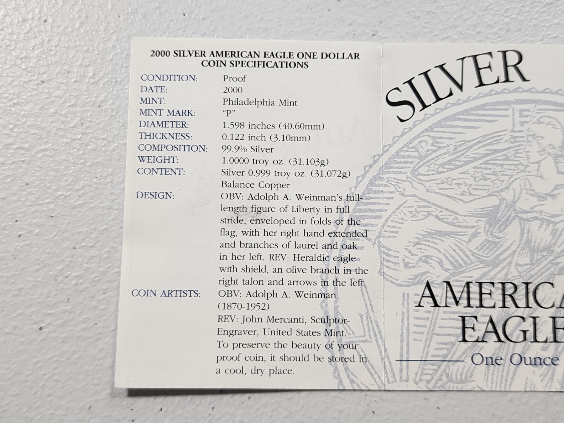 2000 Silver American Eagle - 1 oz .999 Fine Silver - With Box & CoA