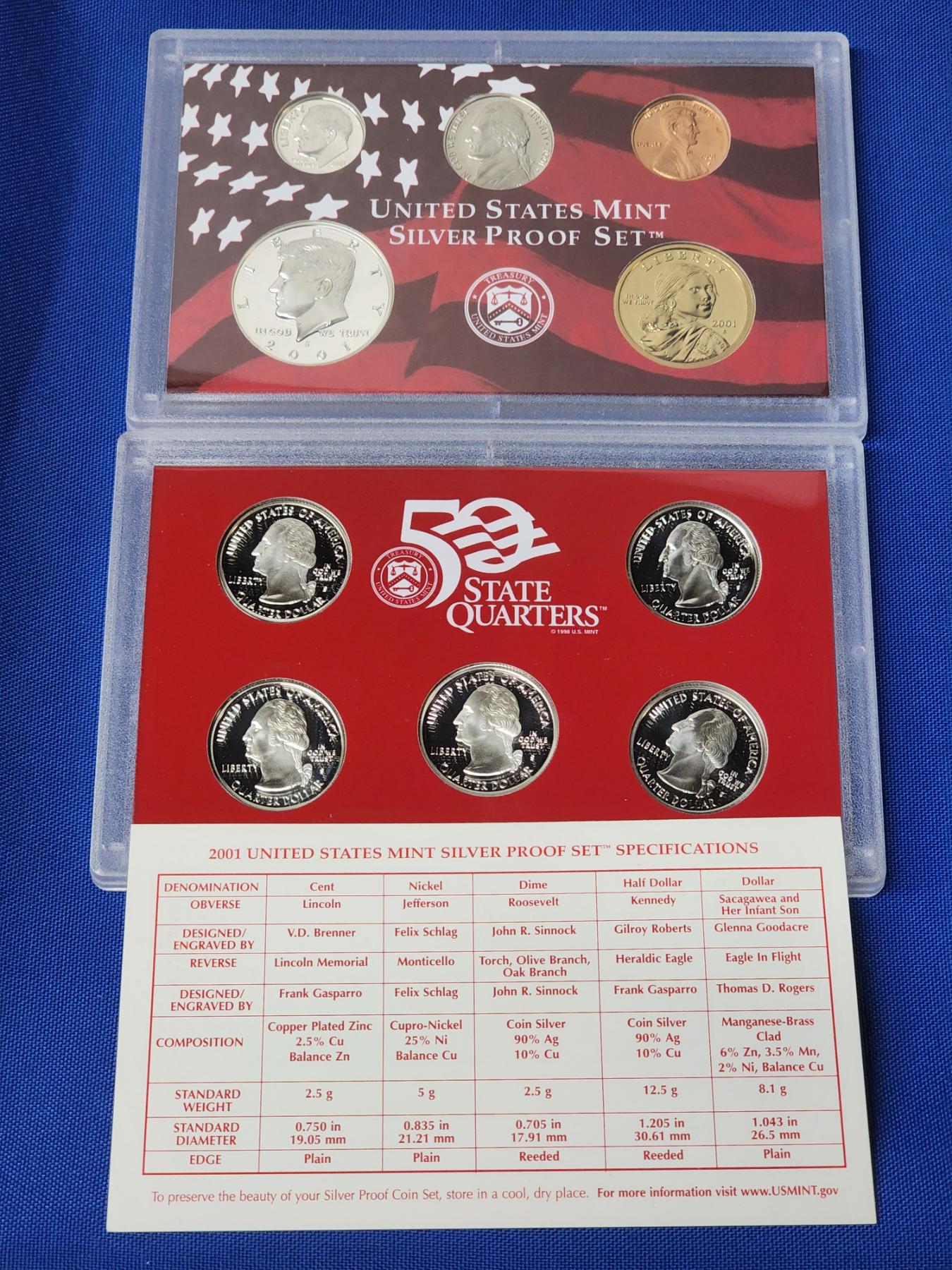 2001 United States Mint Silver Proof Set Including 50 State Quarters
