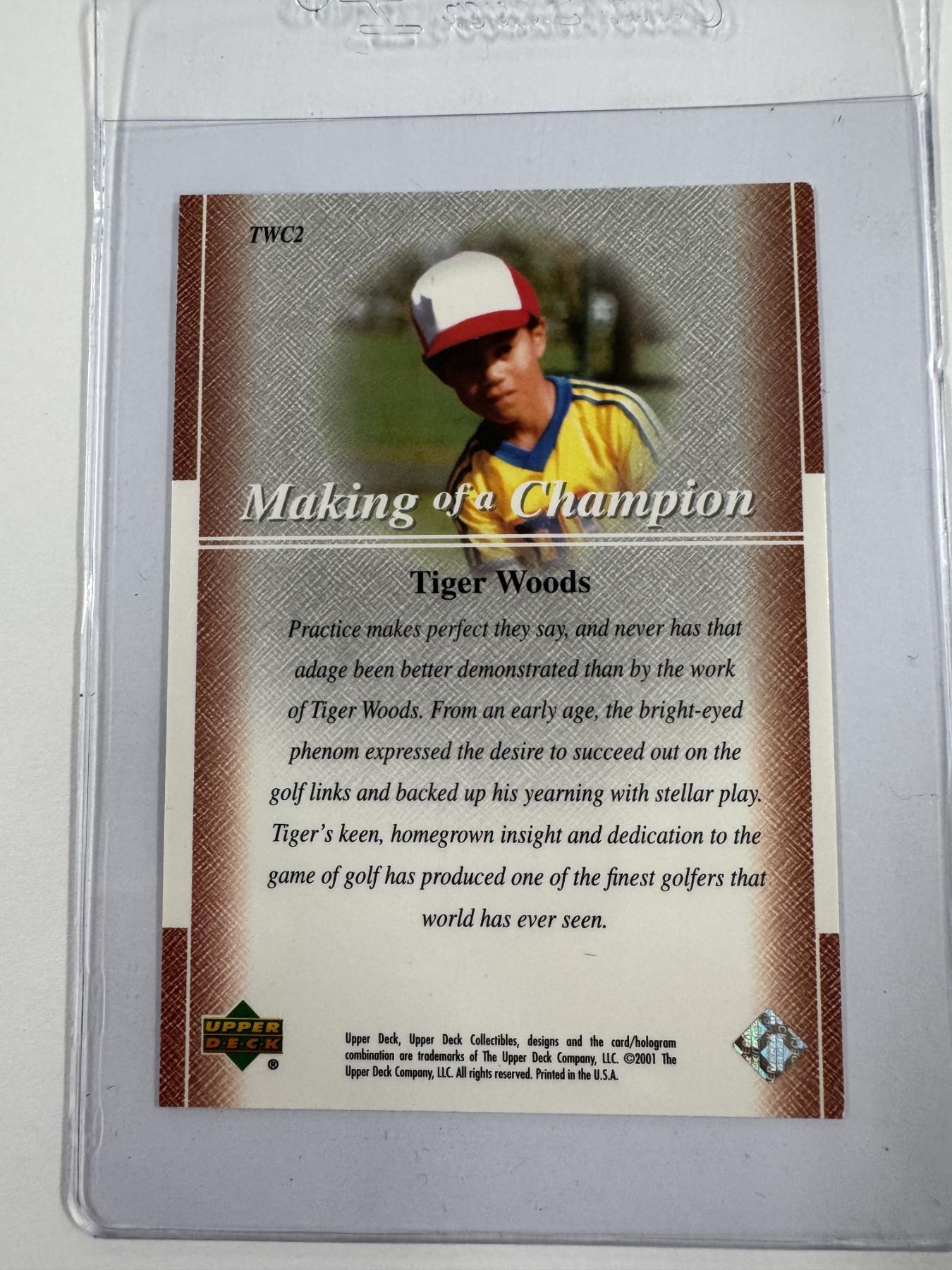 2001 Upper Deck Tiger Woods Rookie Golf Card In Protective Holder - High Grade - Mint Condition