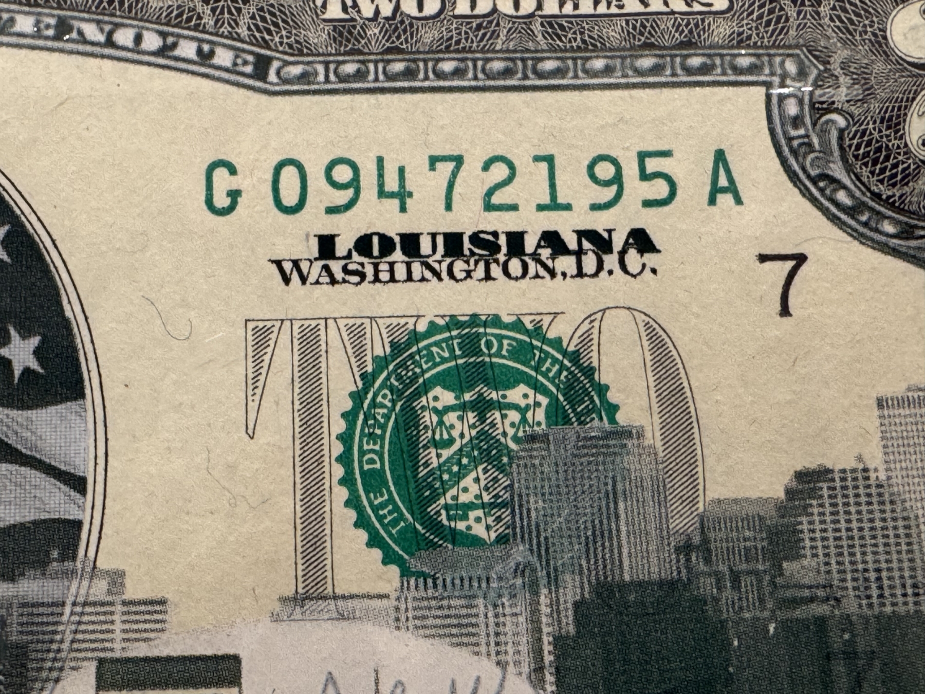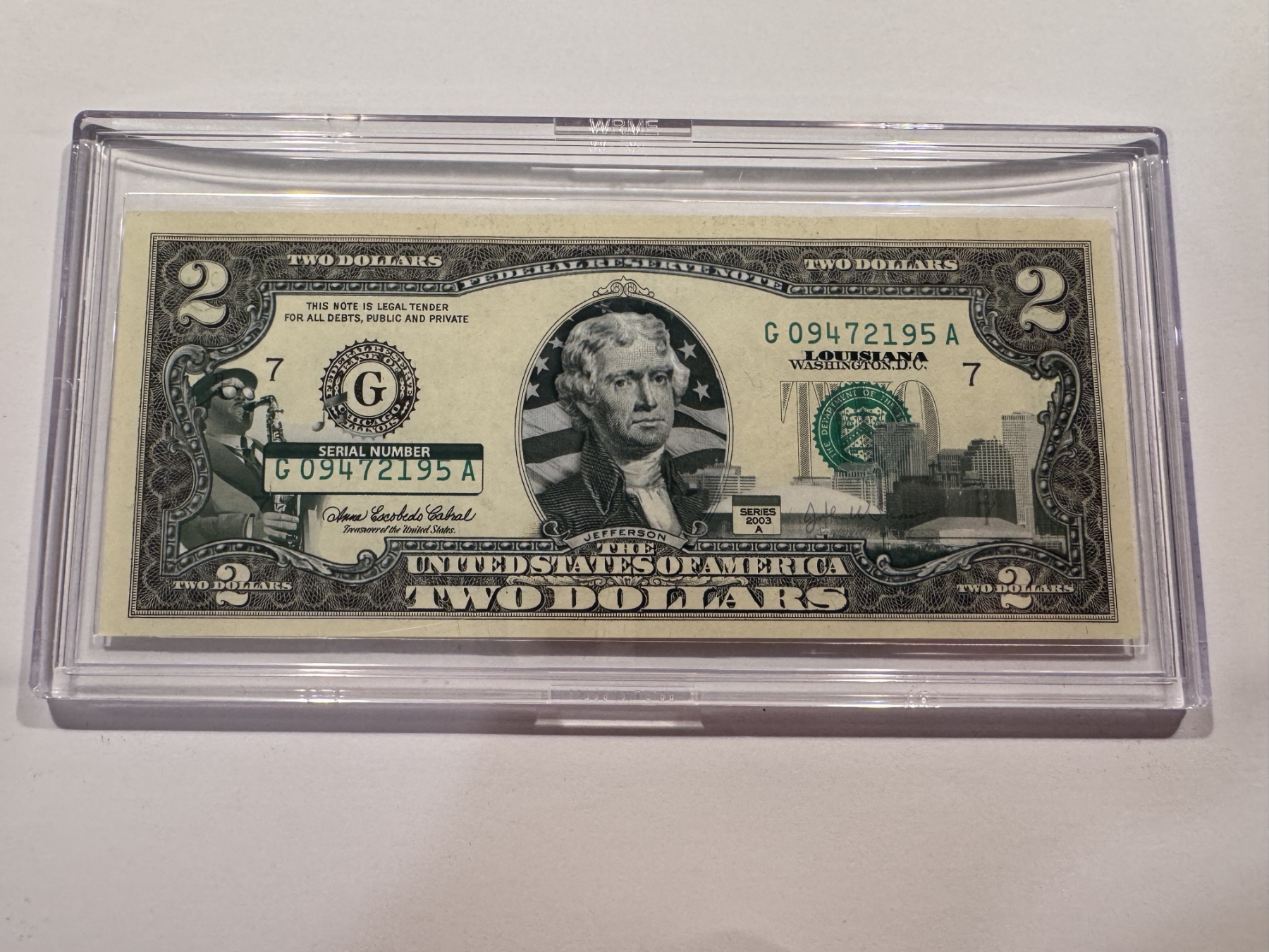 2003 United States Jefferson LOUISIANA $2.00 Bill In Hard Case Holder - Mint Condition - RARE
