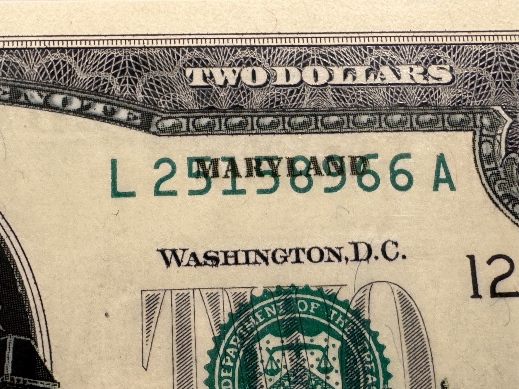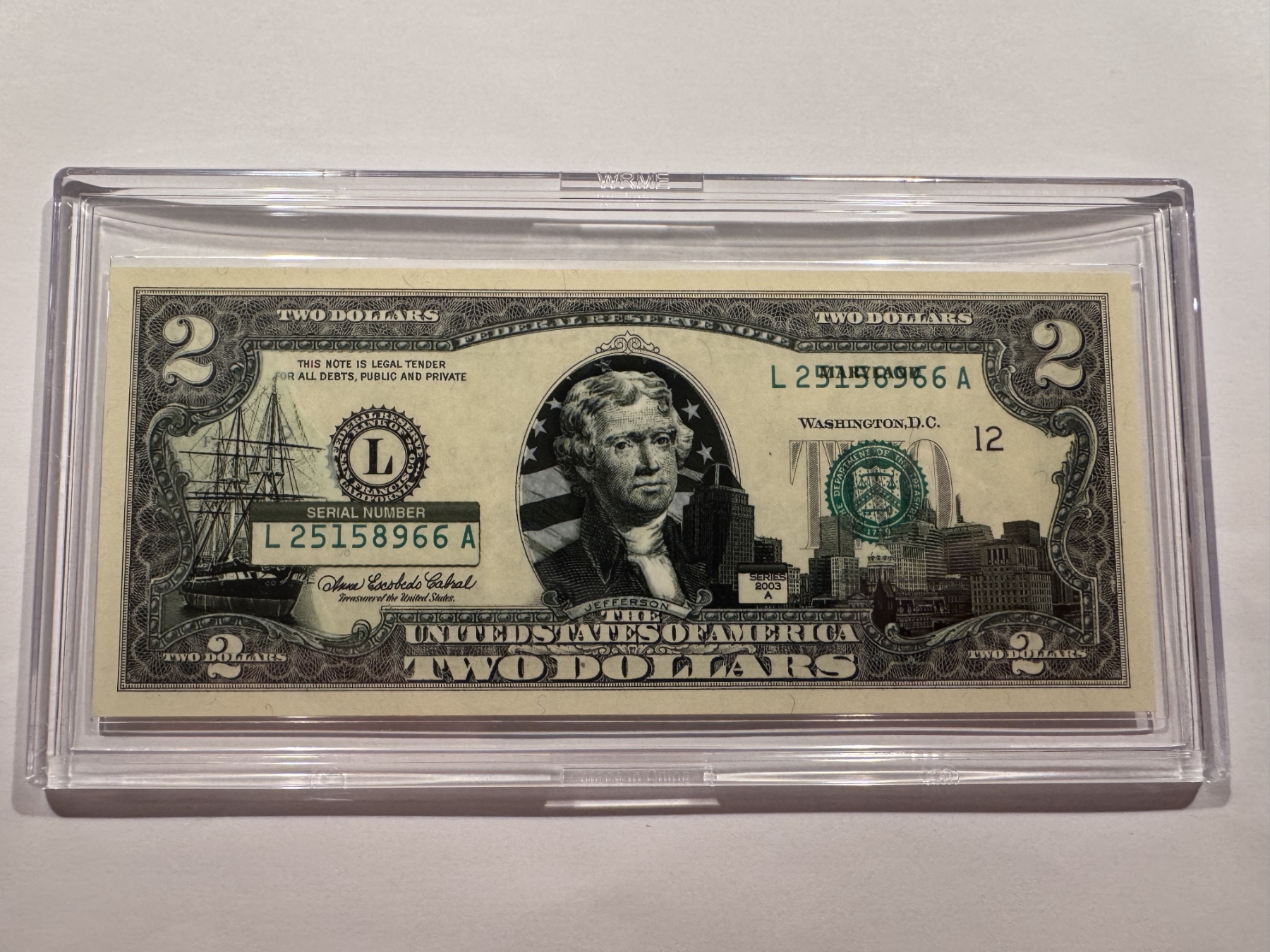 2003 United States Jefferson Maryland $2.00 Bill In Hard Case Holder - Mint Condition - RARE