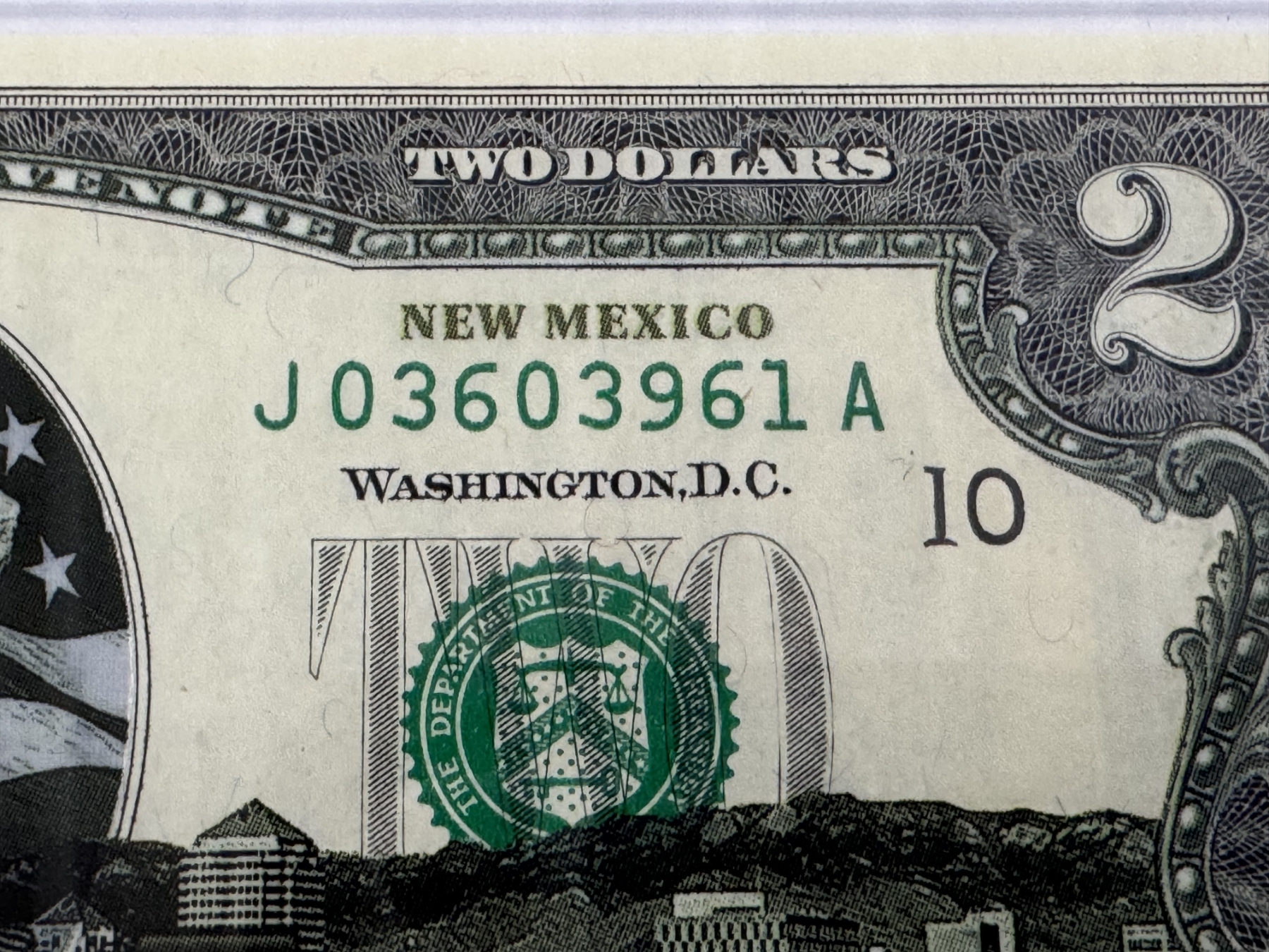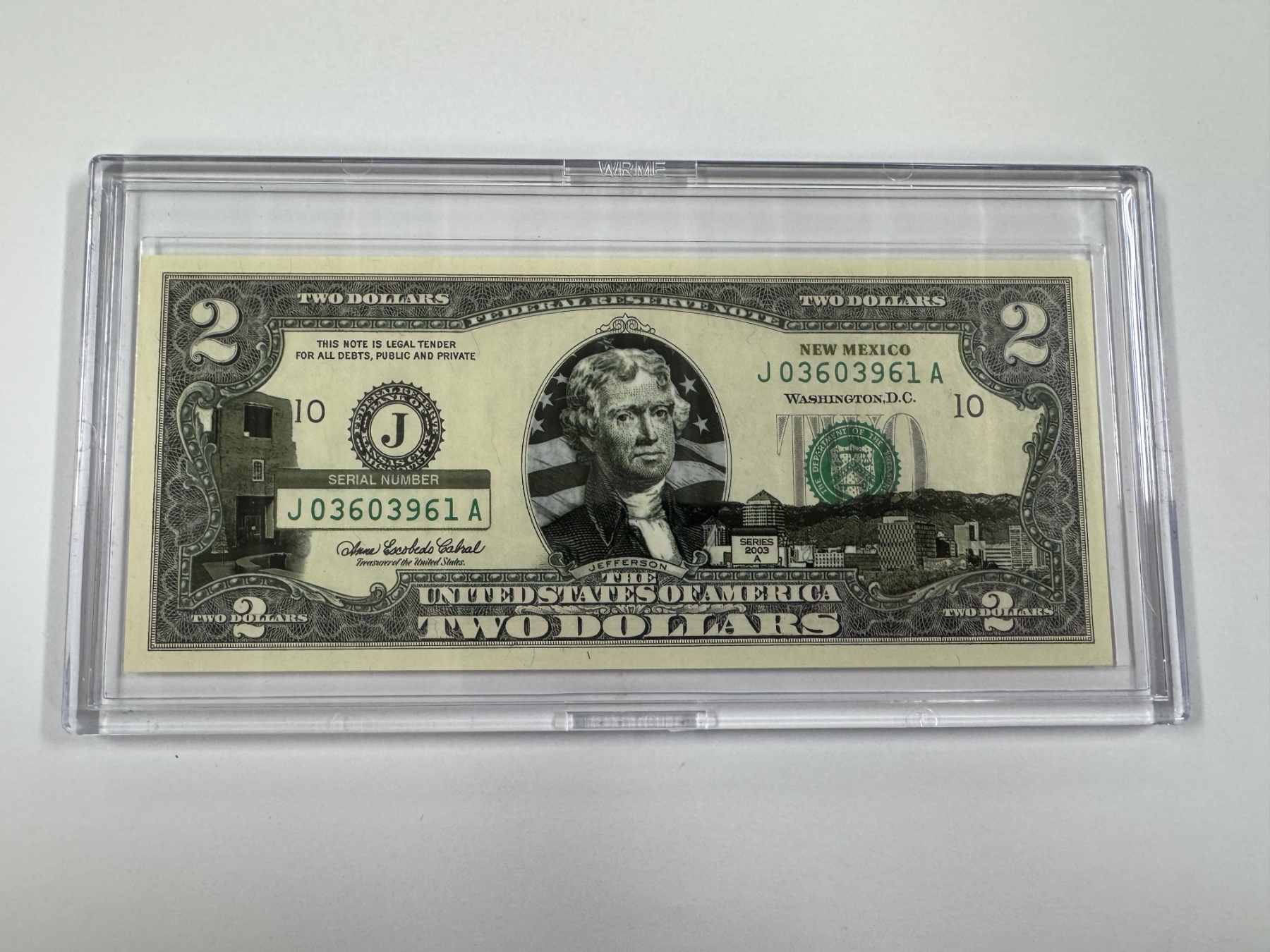 2003 United States Jefferson New Mexico $2.00 Bill In Hard Case Holder - Mint Condition - RARE