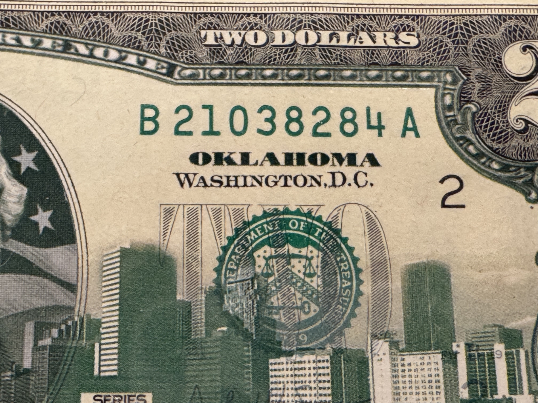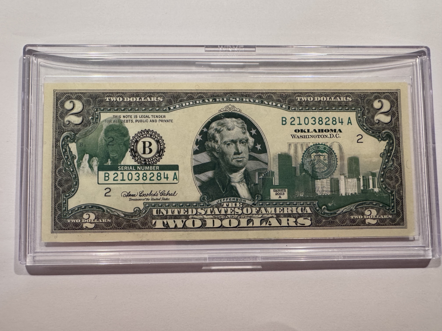 2003 United States Jefferson OKLAHOMA $2.00 Bill In Hard Case Holder - Mint Condition - RARE
