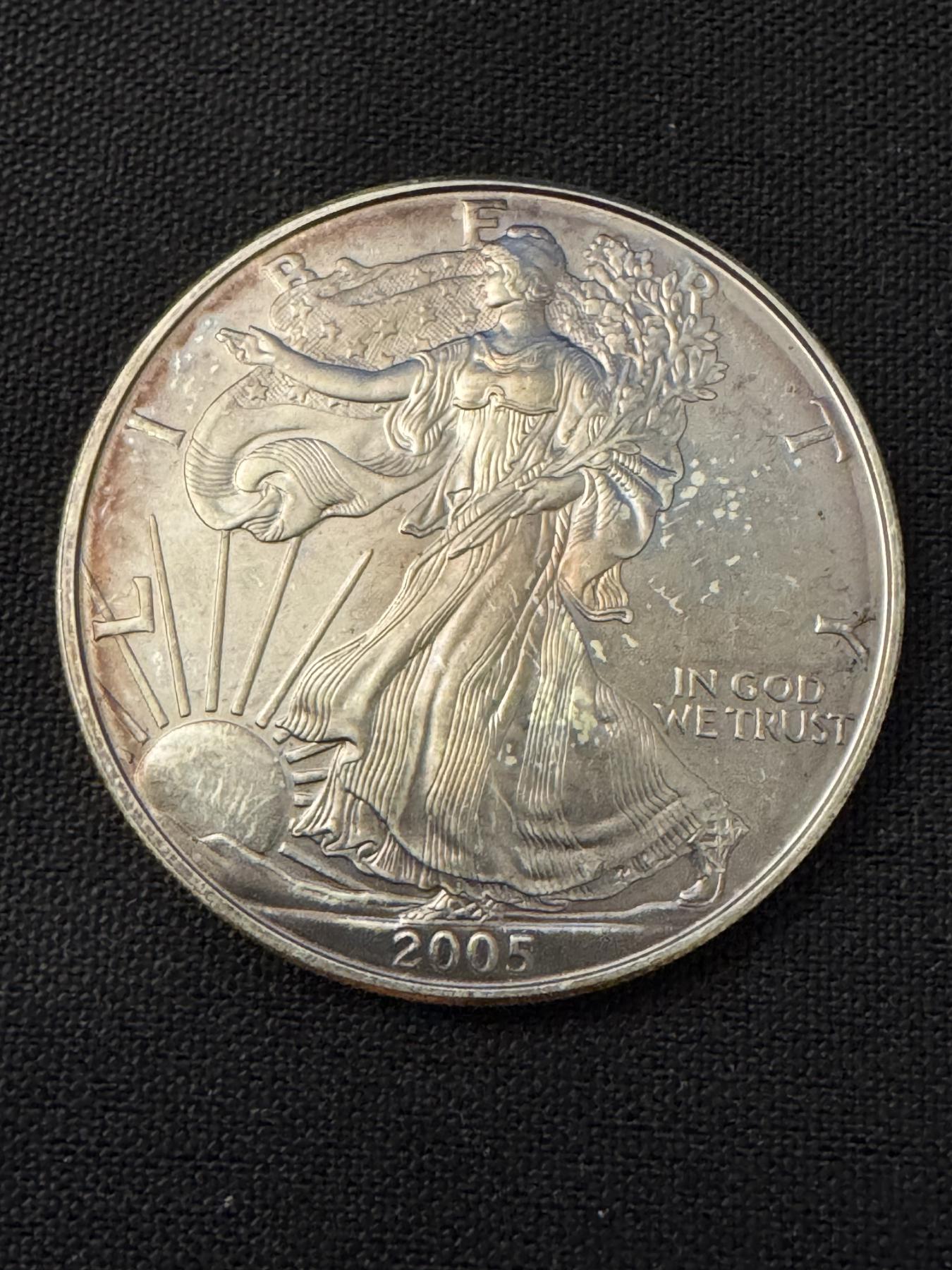 2005 United States One Ounce Silver Eagle .999 Fine Coin - Mint Condition - Incredible Toning