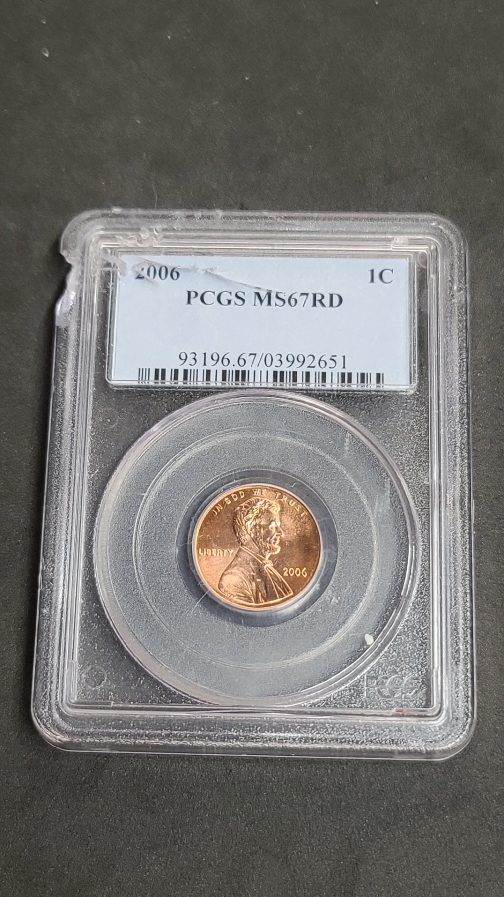 2006 PCGS MS67RD Lincoln Cent - Does Have Damage To Slab