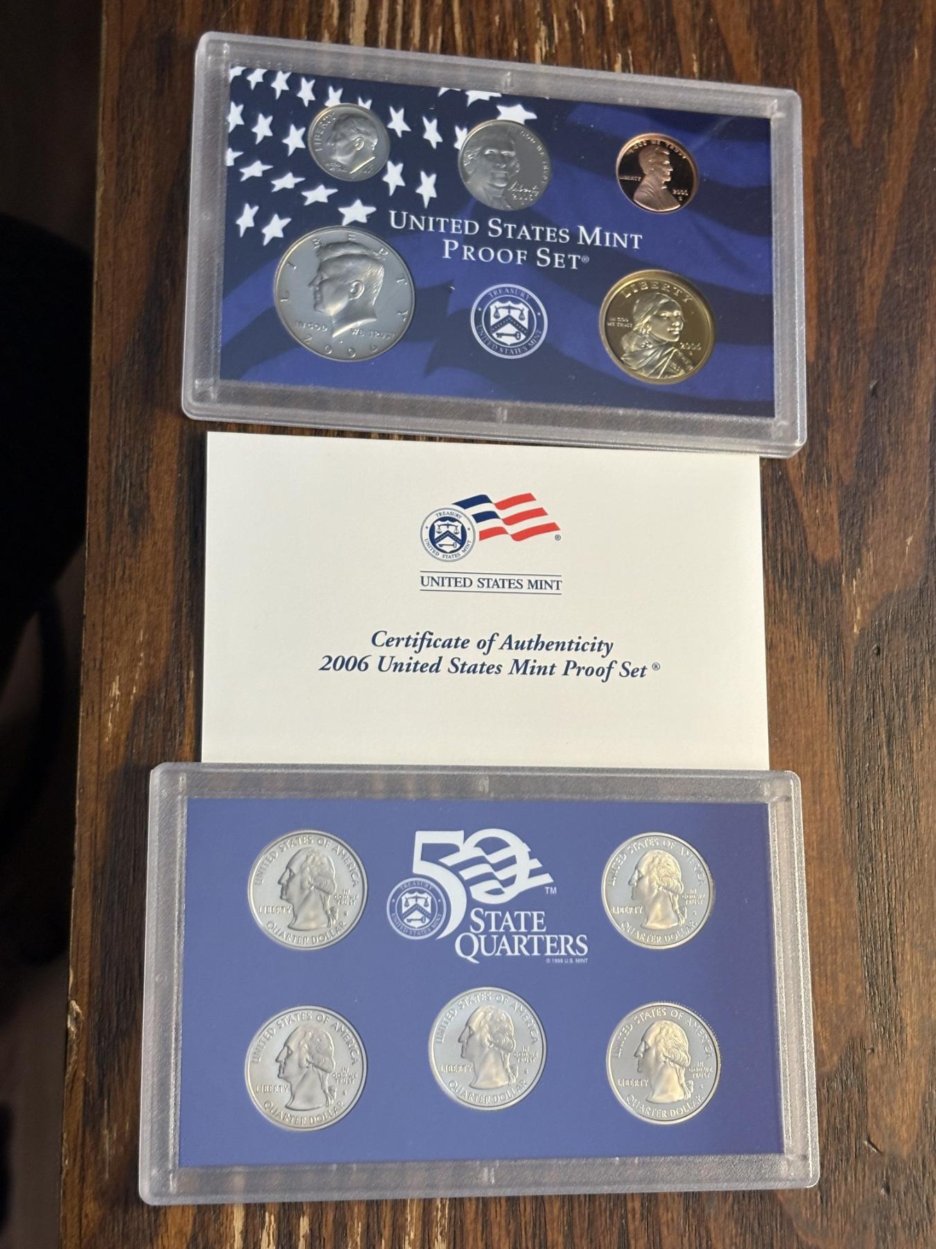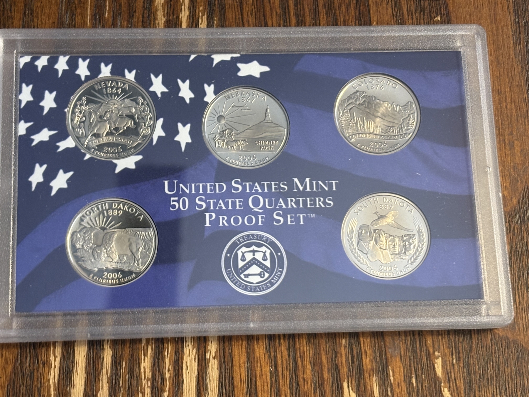 2006 U.S. Mint Proof Set - FV $2.91 - 90% Silver Includes the dime, half dollar, Colorado quarter, Nebraska quarter, Nevada quarter, North Dakota quarter, and South Dakota quarter - Also Includes penny, nickel, and Sacagawea dollar