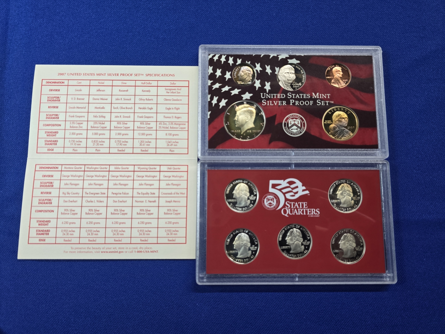 2007 U.S. Mint Silver Proof Set - Presidential $1 Coin Proof Set - 50 State Quarters- 14 Coins Total