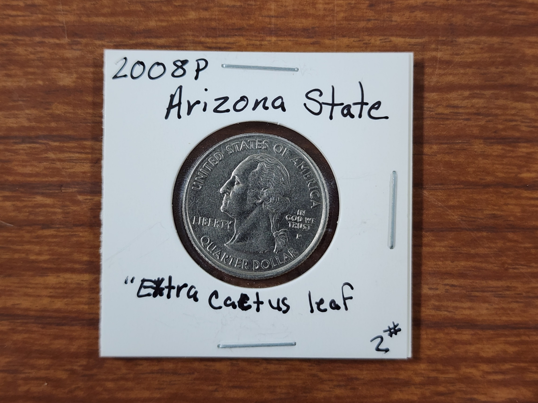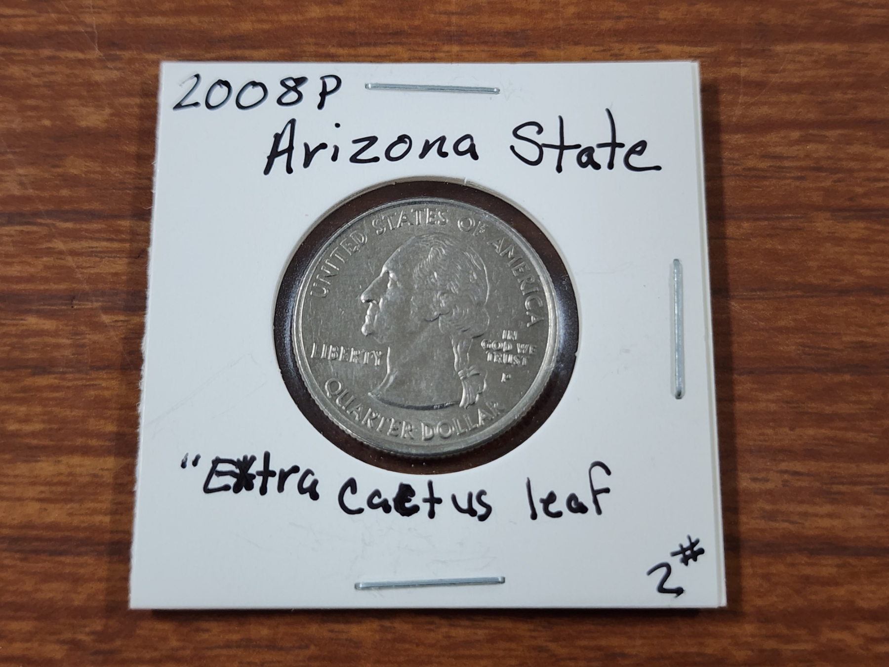 2008-P United States Arizona State Quarter Featuring A Possible Minor Extra Cactus Leaf Error! NOT CERTIFIED!