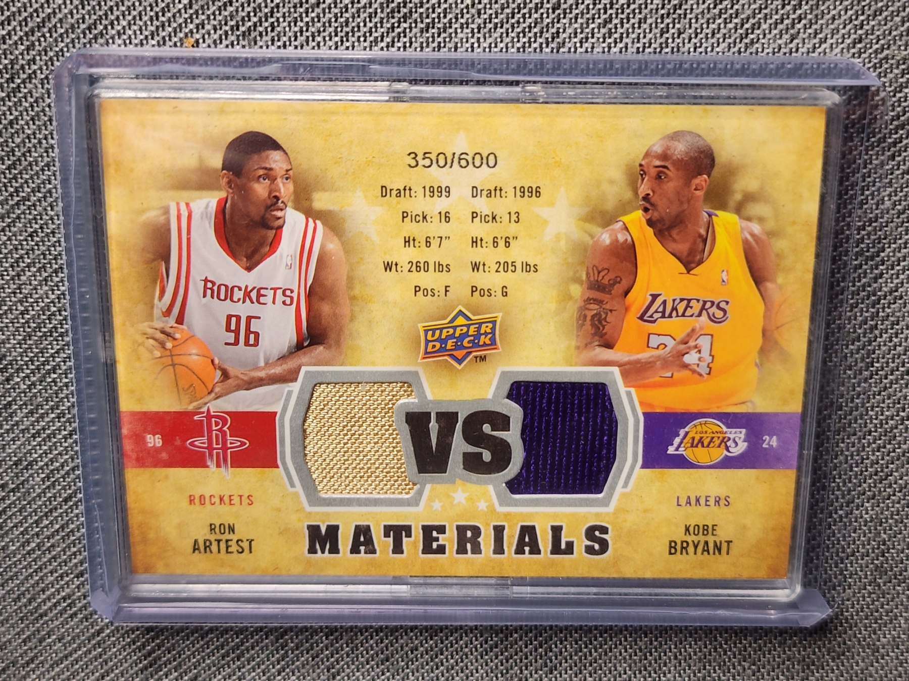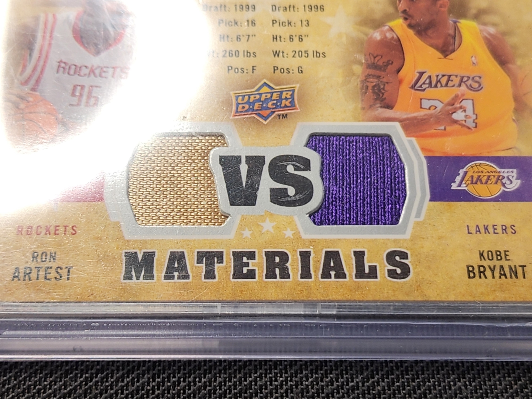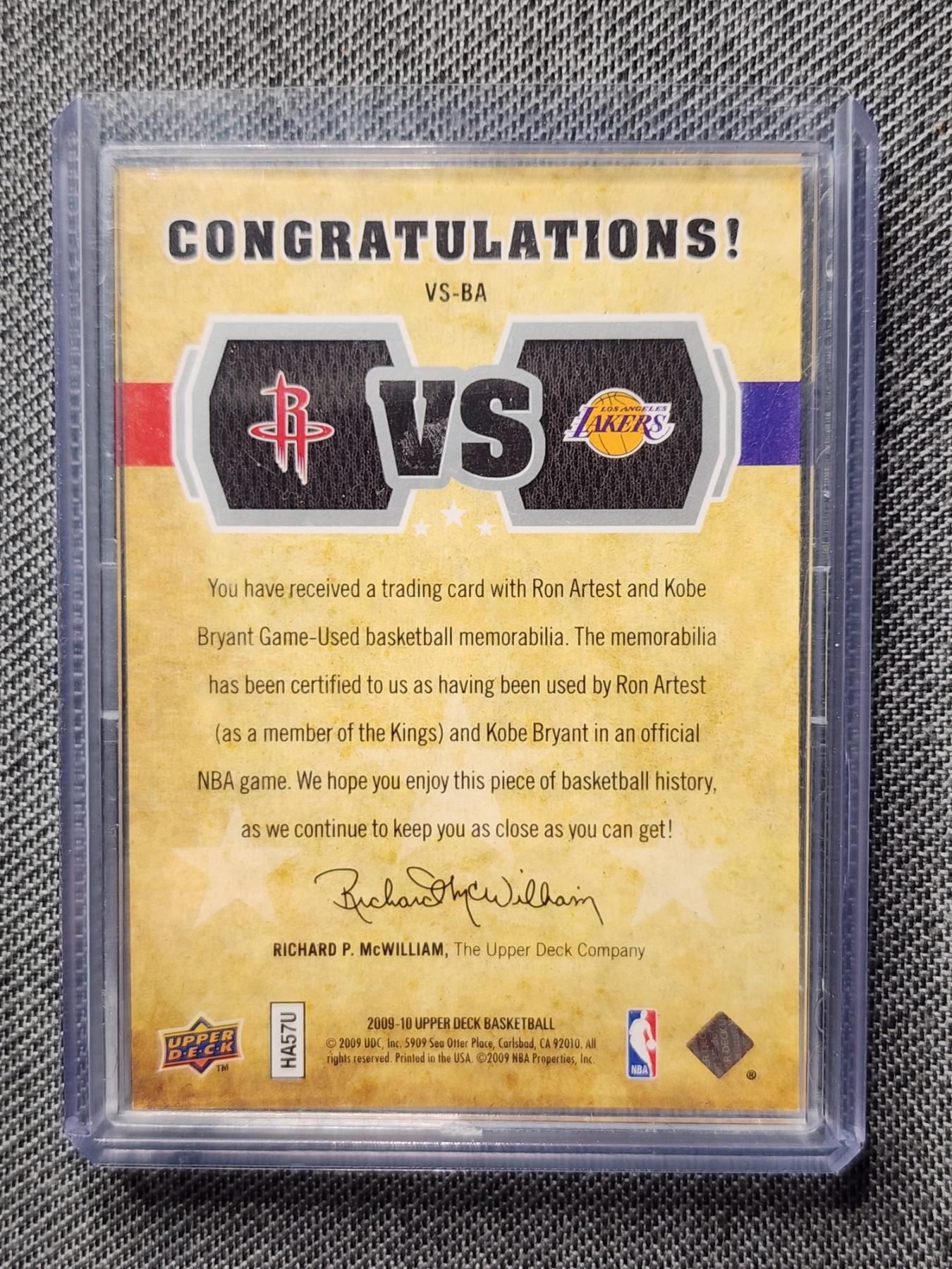 2009-10 Upper Deck Basketball Trading Card VS-BA - Ron Artest & Kobe Bryant Dual Patch Trading Card - Numbered 350/600