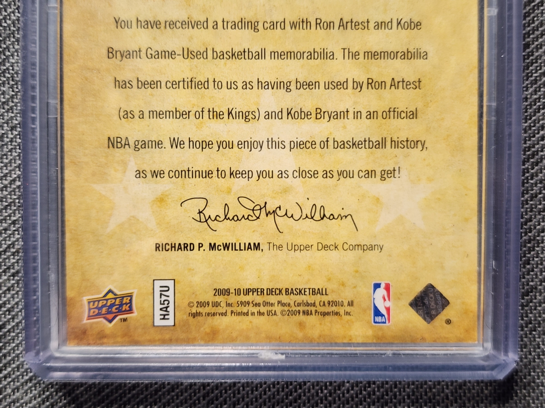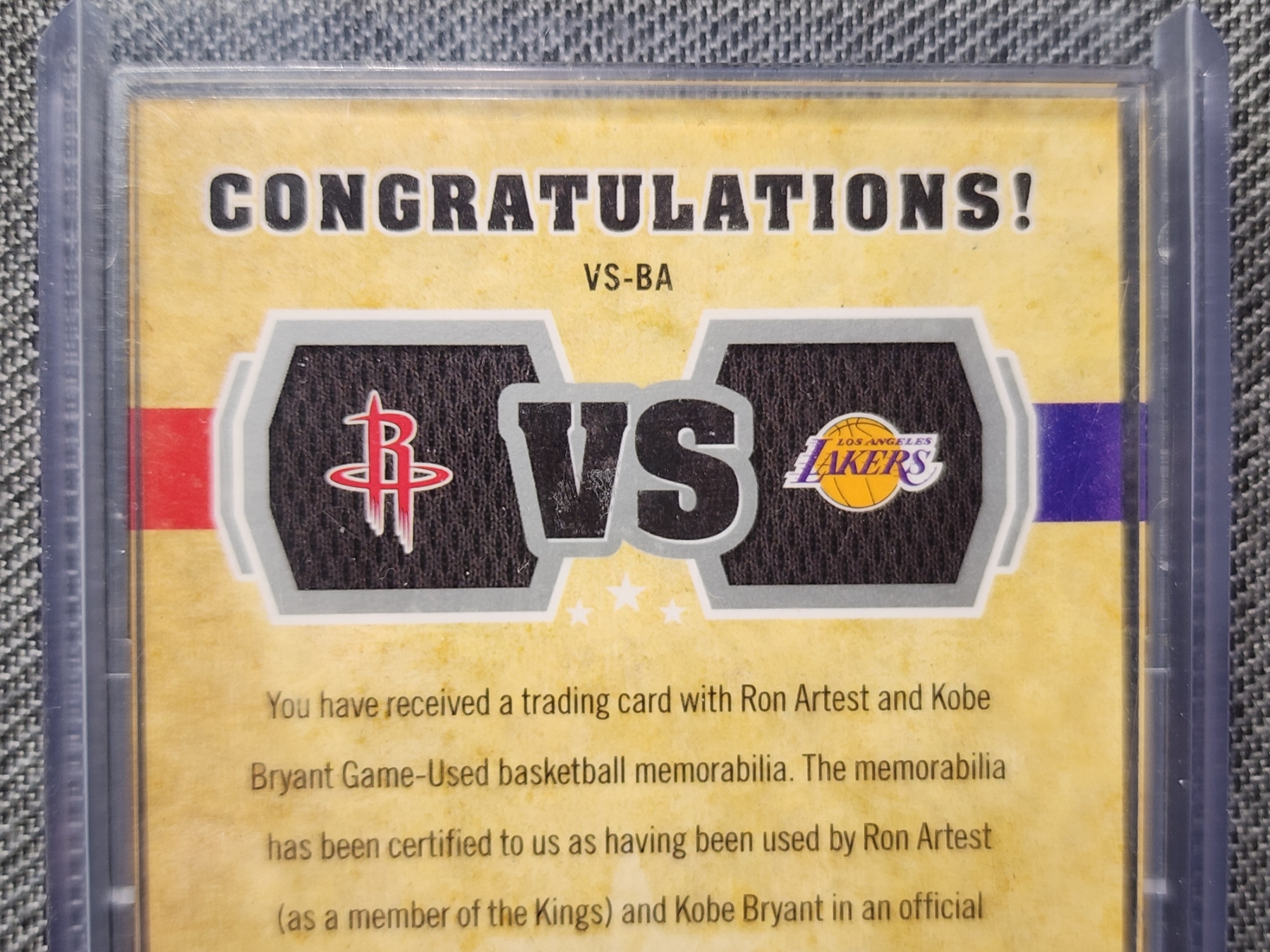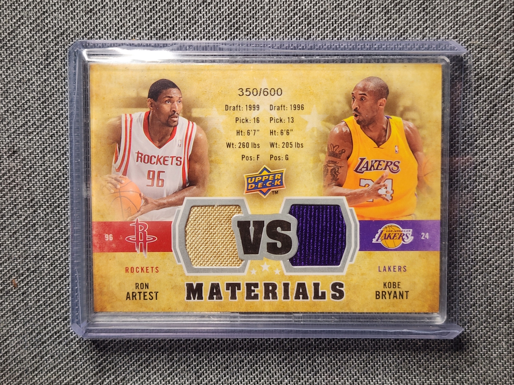 2009-10 Upper Deck Basketball Trading Card VS-BA - Ron Artest & Kobe Bryant Dual Patch Trading Card - Numbered 350/600