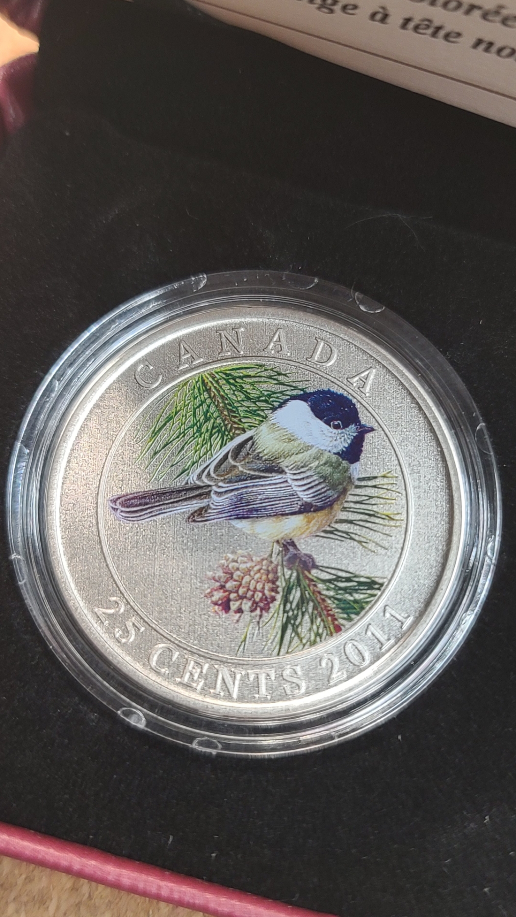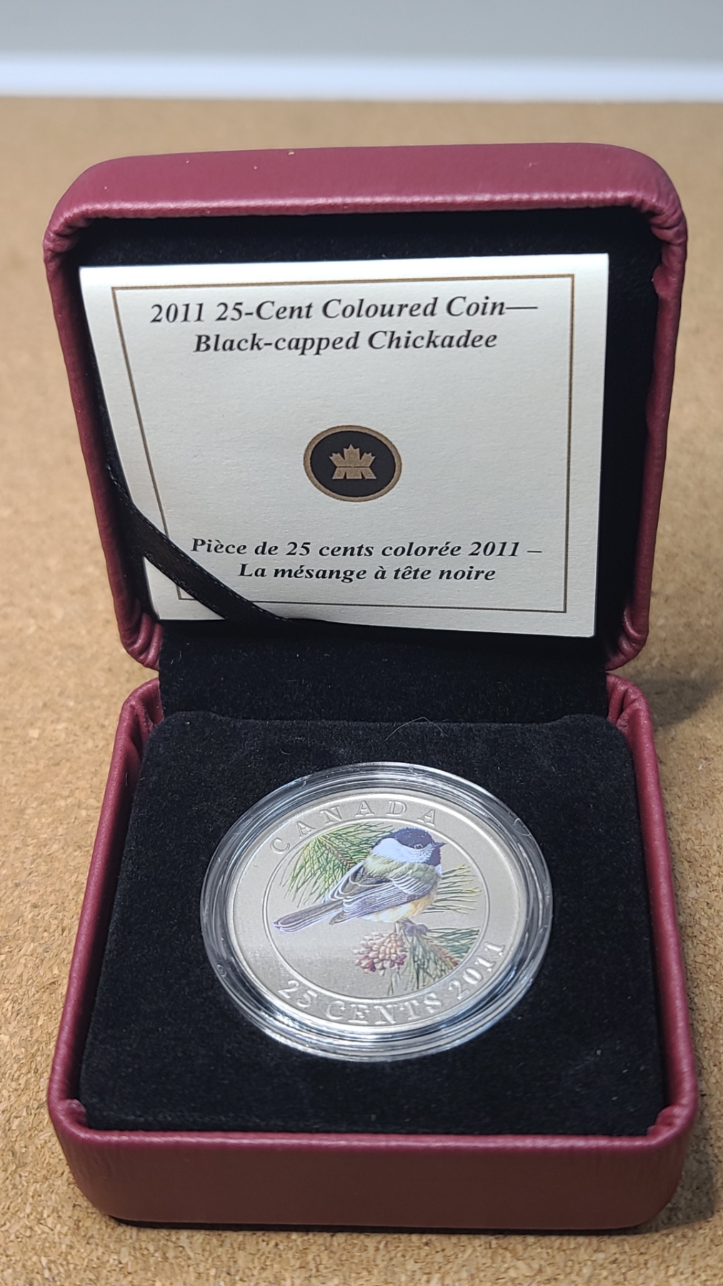 2011 Canadian 25-Cent Colored Black-Capped Chickadee Coin From The Royal Canadian Mint's "Birds of Canada"