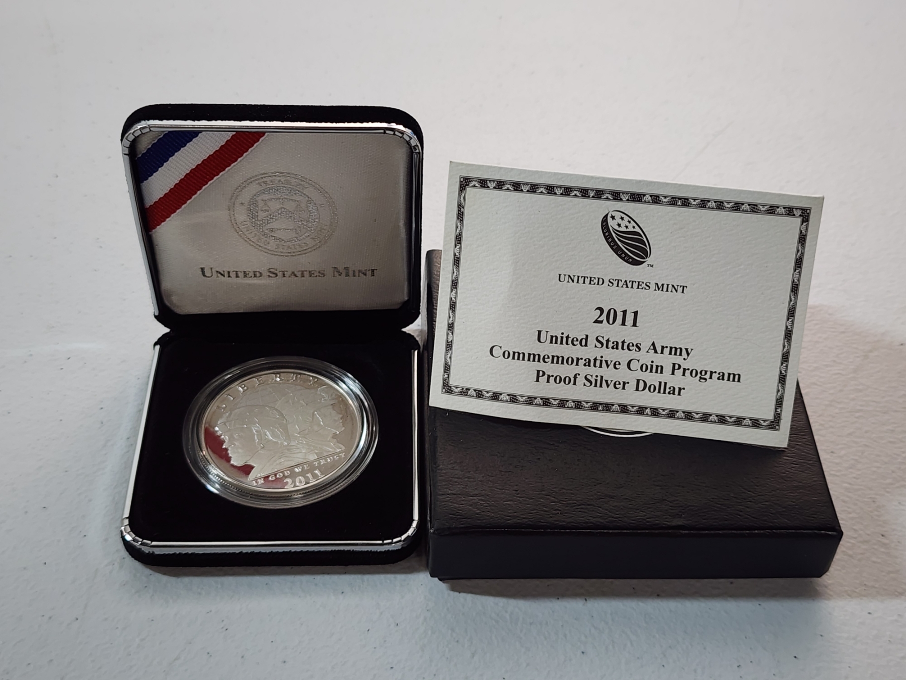 2011 U.S. Army Commemorative Proof 90% Silver Dollar In Presentation Box w/ CoA