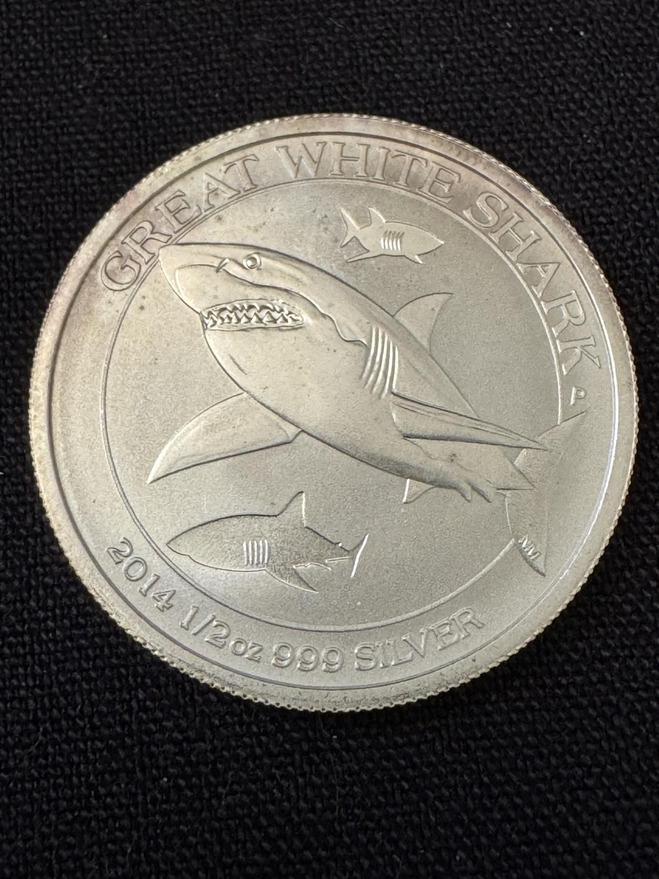 2014 Australia 50 Cents Great White Shark 1/2 Oz .999 Fine Silver Coin - Mint Condition