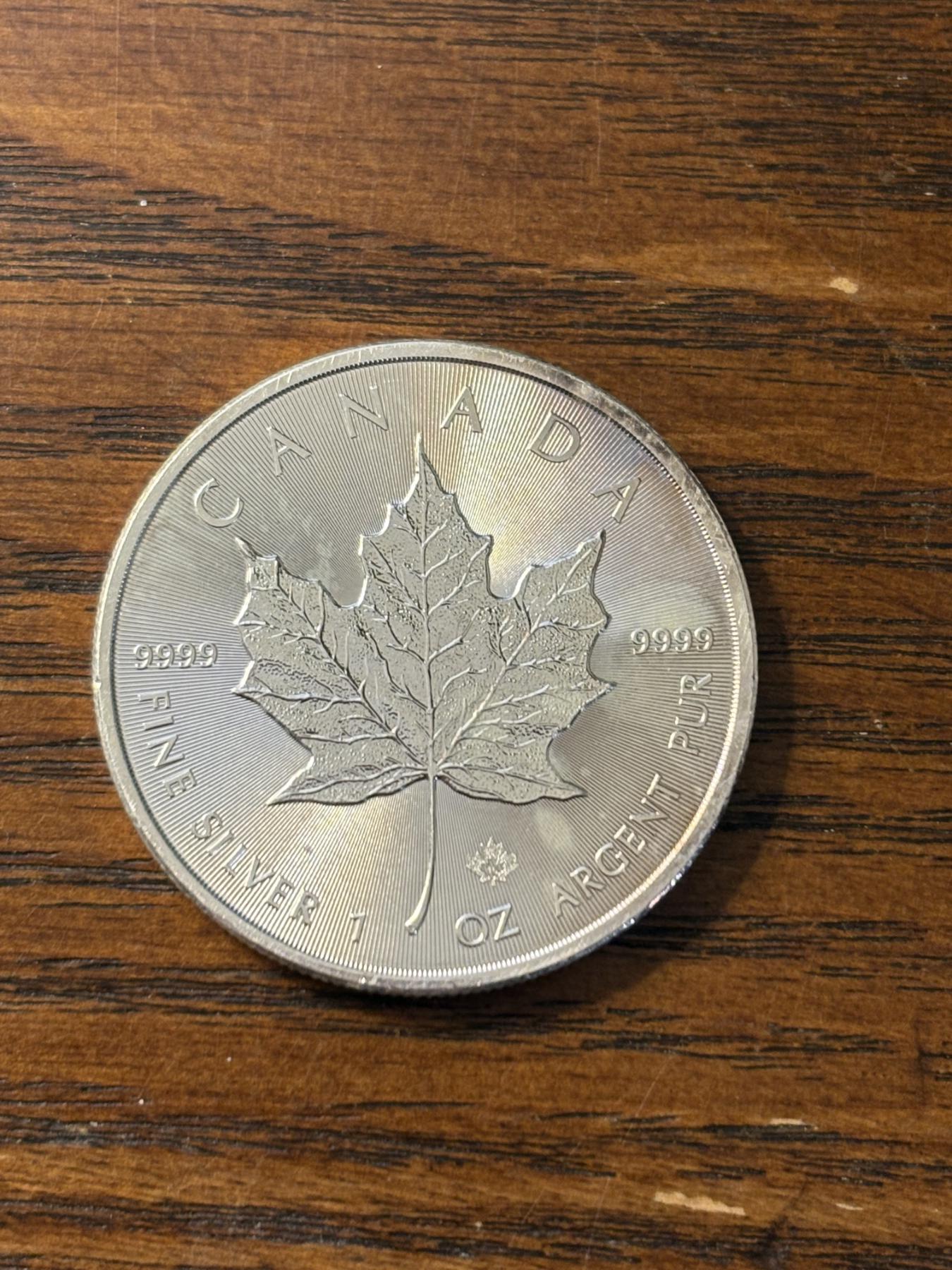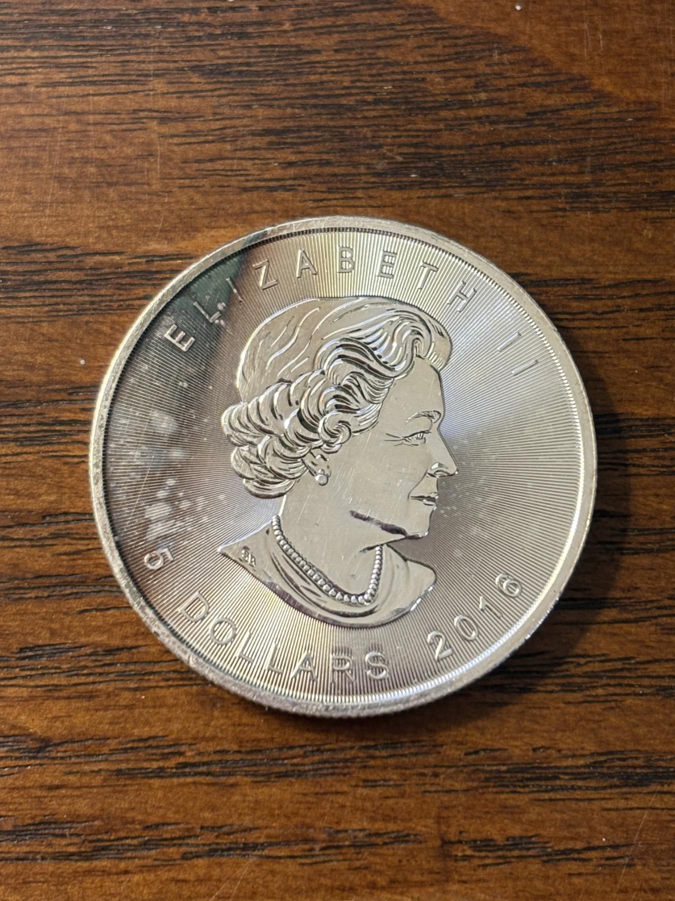 2016 1 oz Canadian Silver Maple Leaf coin - FV $5.00 (CAD) - Queen Elizabeth II