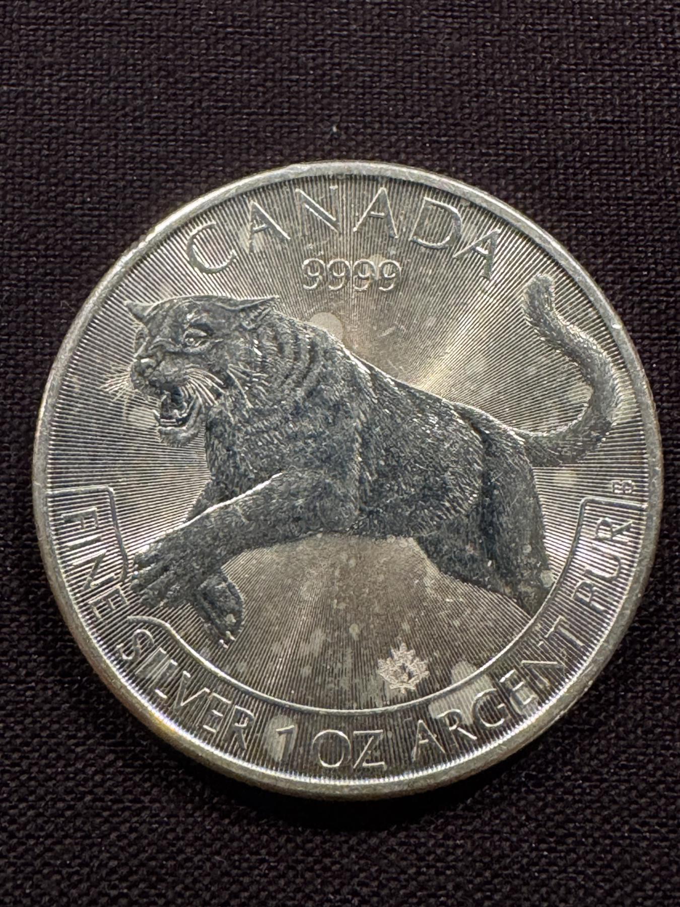 2016 Royal Canadian Mint Cougar .9999 1 Troy Oz Fine Silver Coin - Hard To Find!!