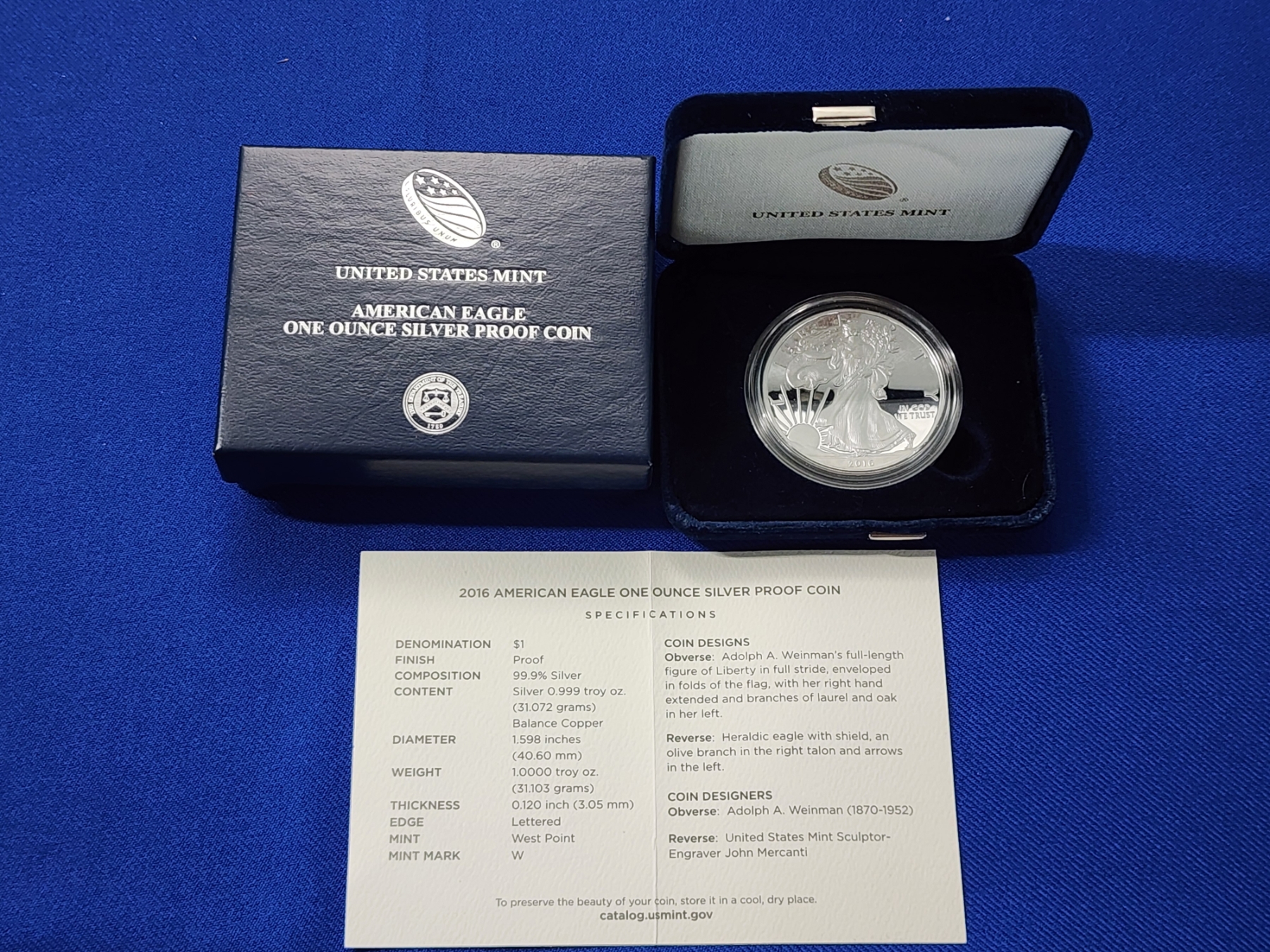 2016-W Silver American Eagle $1 Proof - 1 Troy Ounce 99.9% Silver w/ Original Box & COA