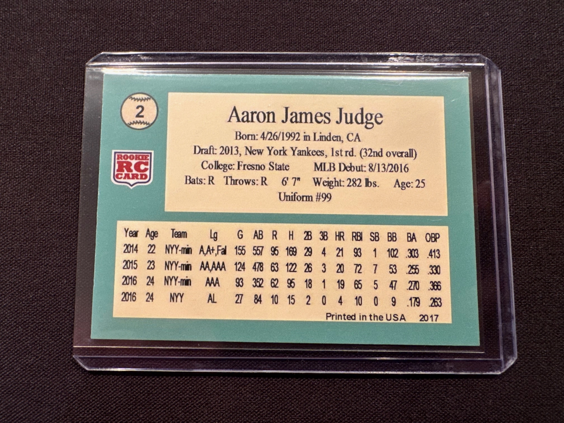 2017 AARON JUDGE New York Yankees Card #2 Rookie Baseball Card - Mint Condition