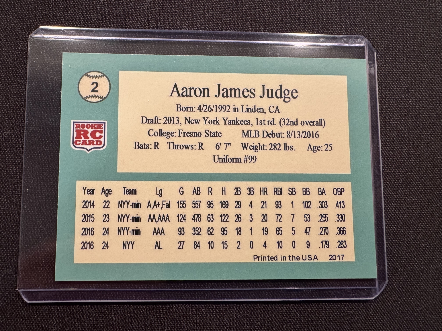 2017 Aaron Judge New York Yankees Rookie Baseball Card - Mint Condition