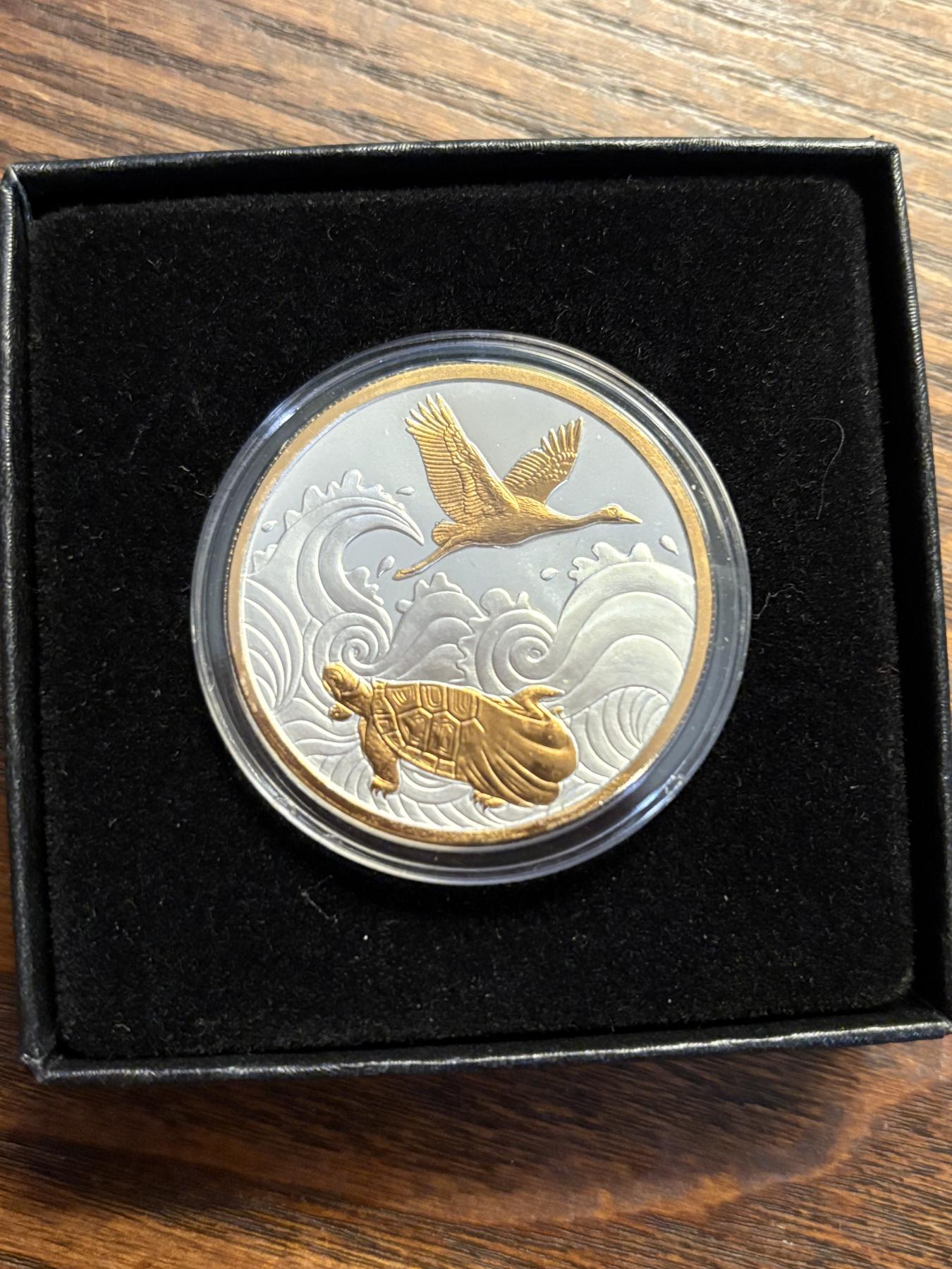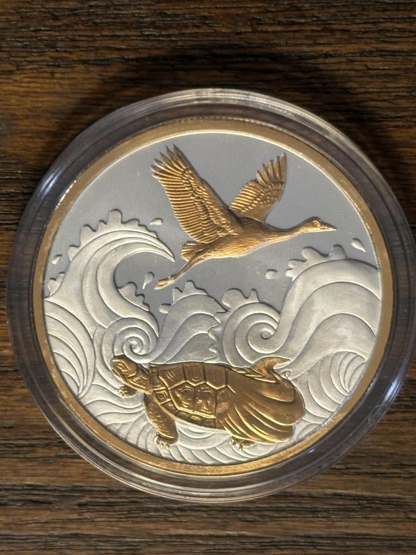 2017 “Tsurukame” 1oz. Silver LE Gold Gilded - Gold Plated - Japanese Longevity Coin
