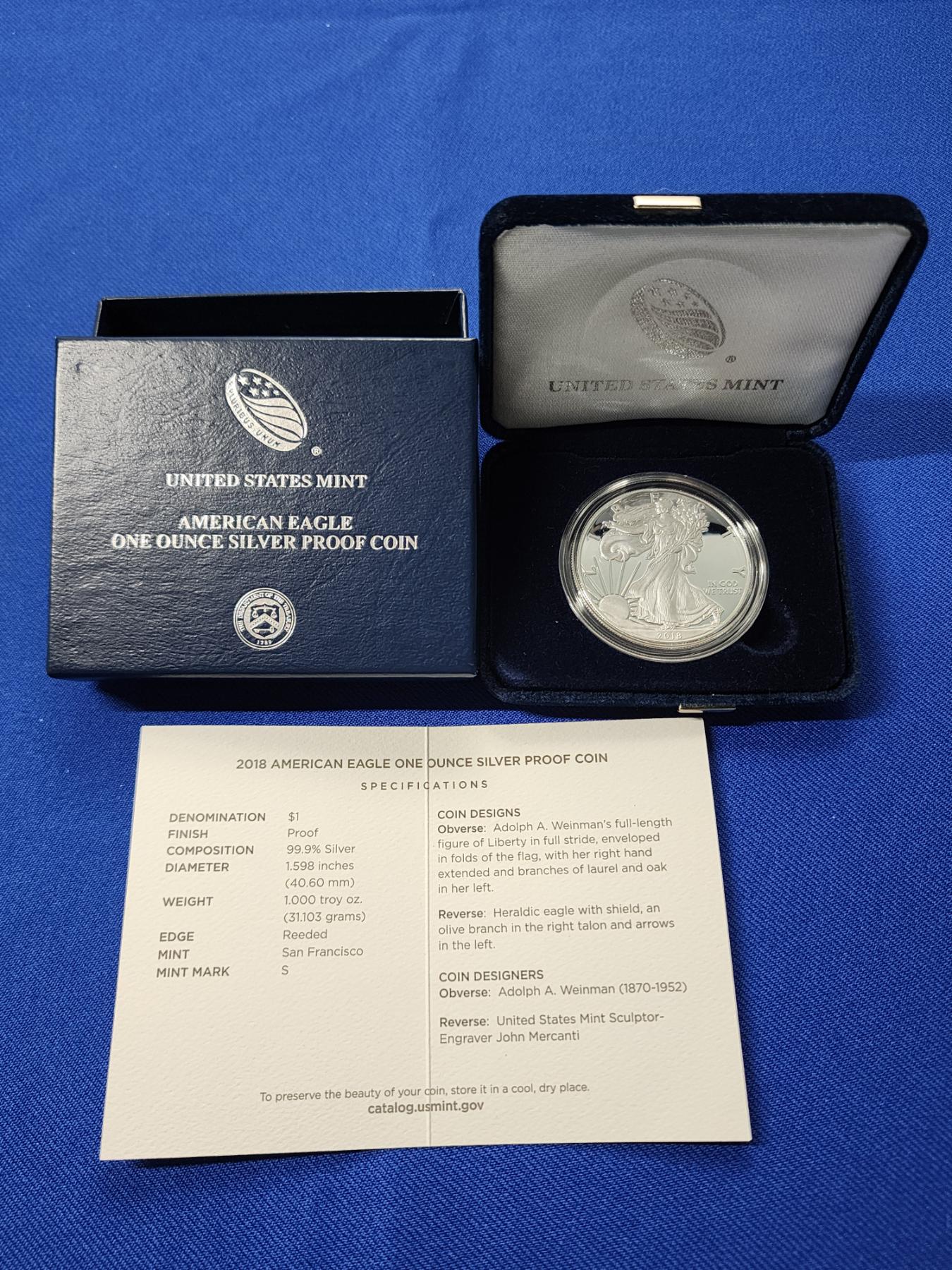 2018-S American Eagle 1 oz Silver Proof Coin w/ Box & COA