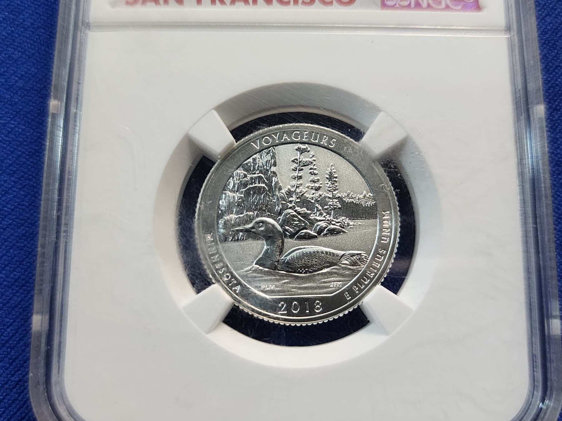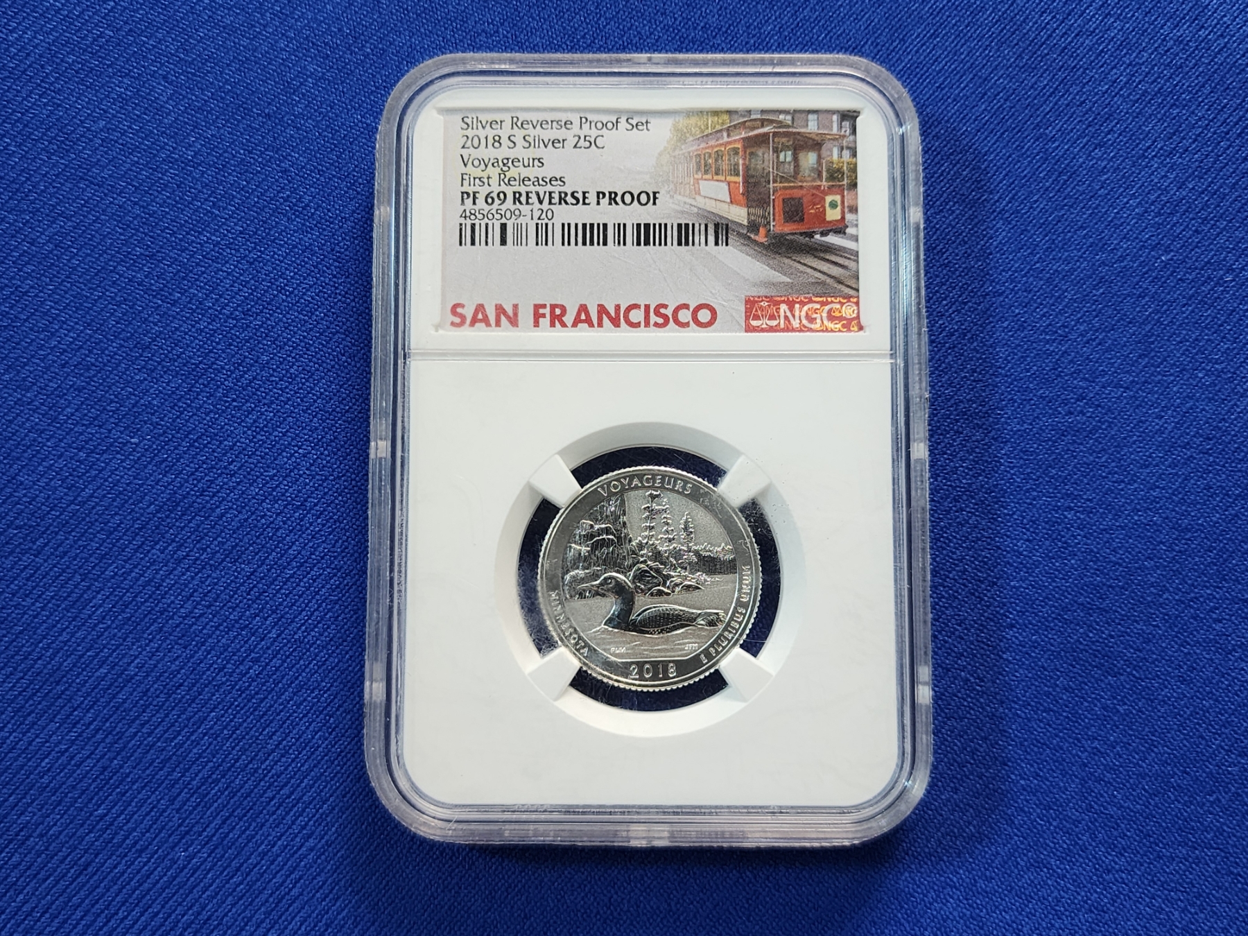 2018-S Silver Quarter First Releases Voyageurs eases NGC Graded PF 69 REVERSE PROOF