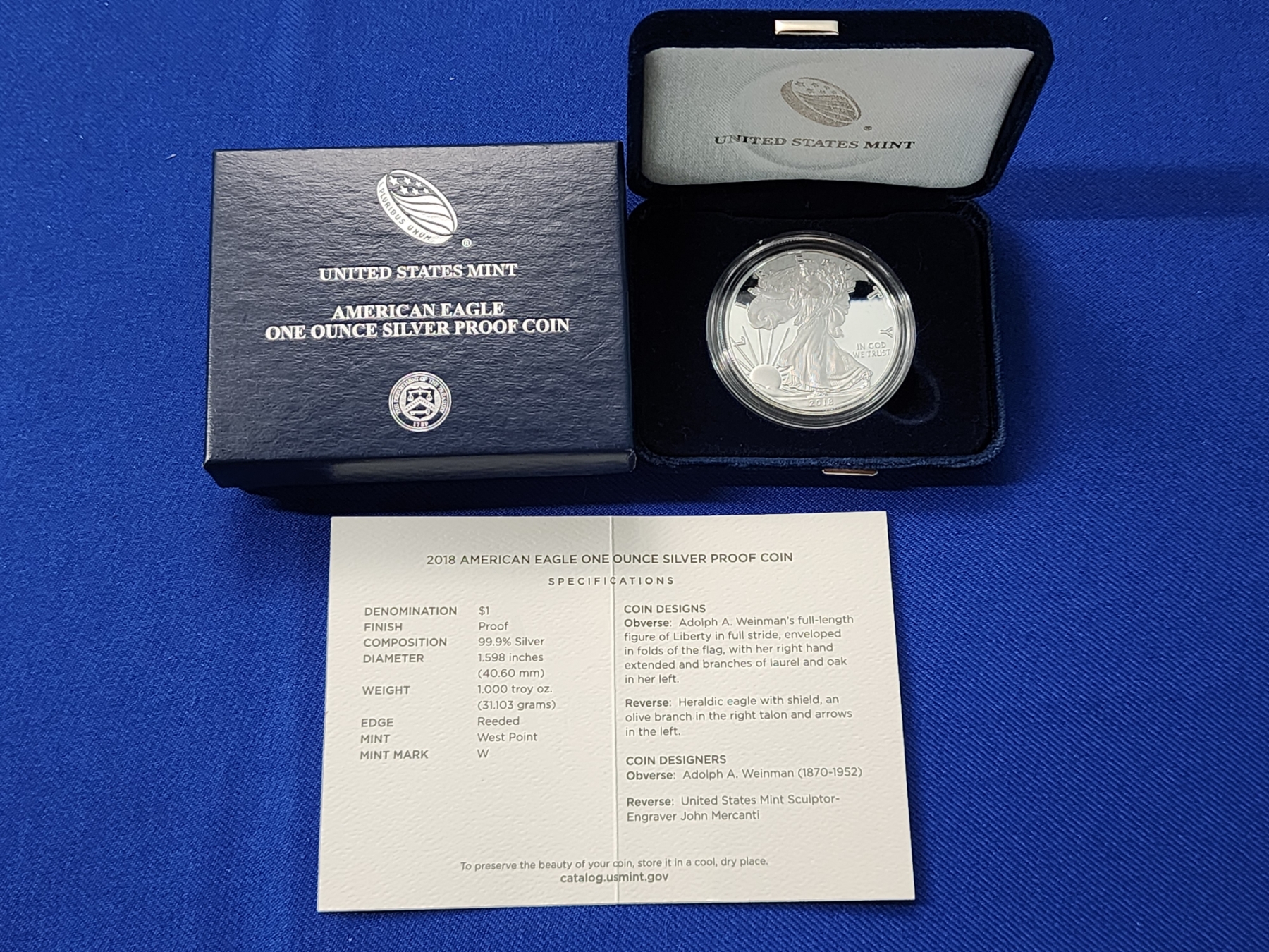 2018-W Silver American Eagle $1 Proof - 1 Troy Ounce 99.9% Silver w/ Original Box & COA
