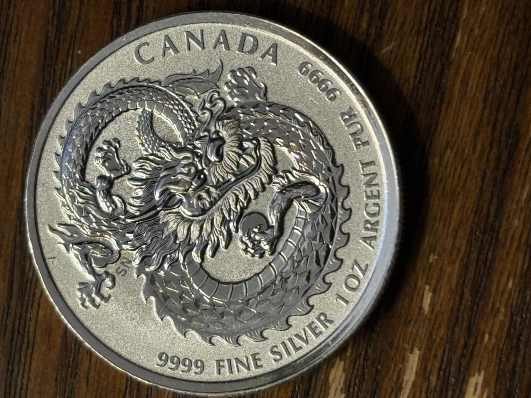 2019 1 oz Canadian Lucky Dragon High Relief Silver Coin - FV $5.00 CAD - .999 Fine Silver