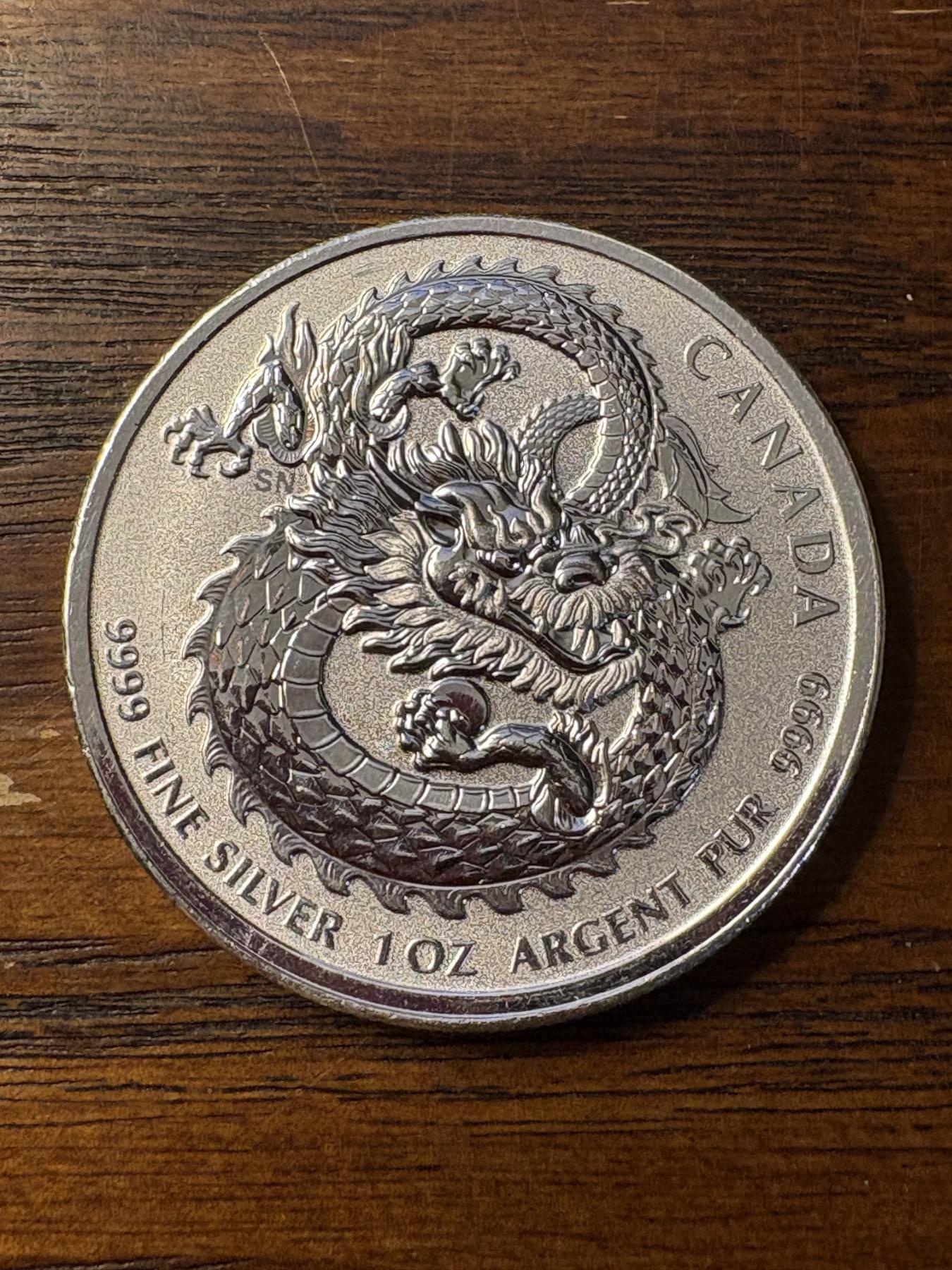2019 1 oz Canadian Lucky Dragon High Relief Silver Coin - FV $5.00 (CAD) - crafted by the Royal Canadian Mint