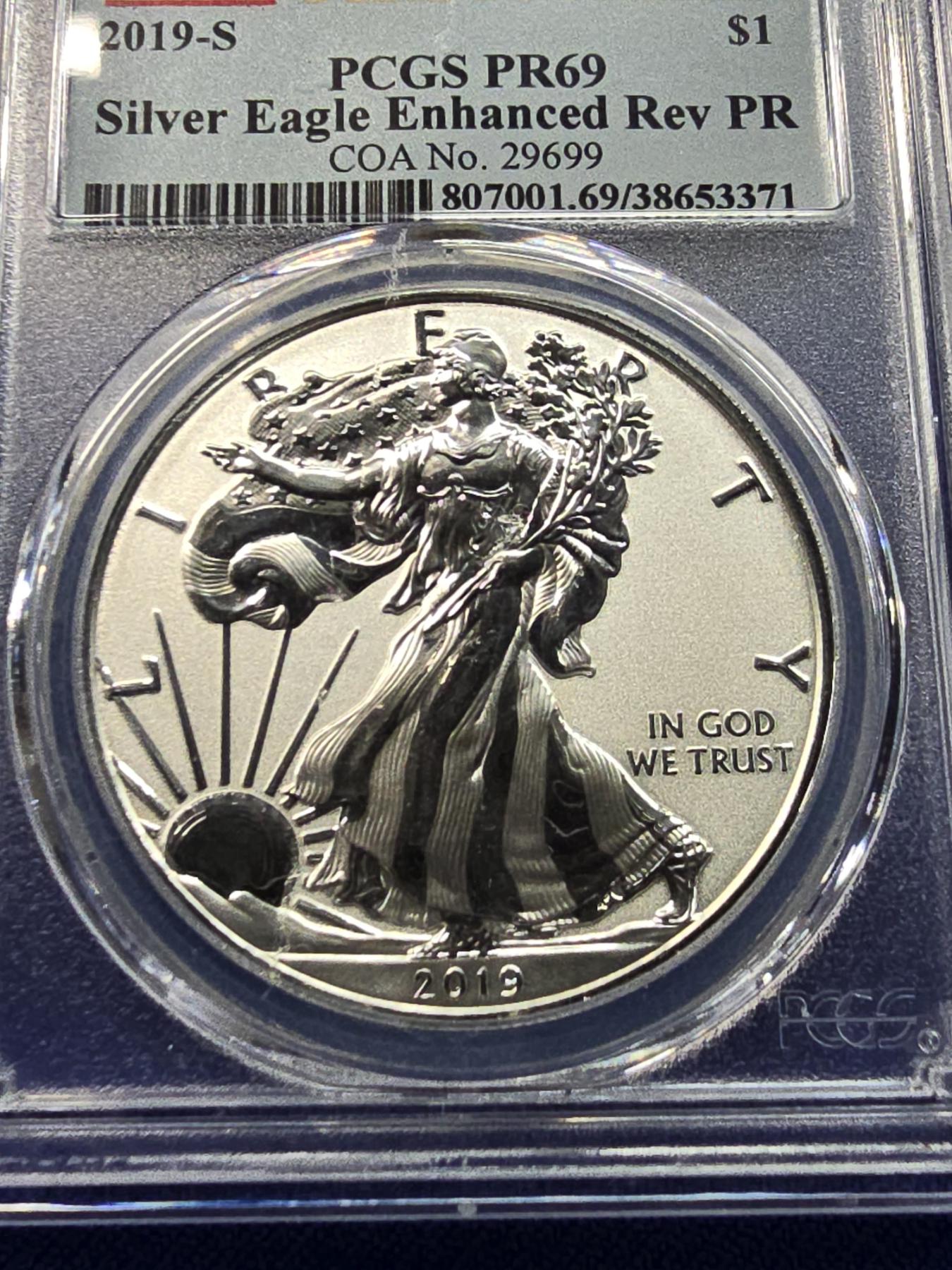 2019-S U.S. Silver Eagle Enhanced Reverse Proof PCGS PR69 with COA #29699