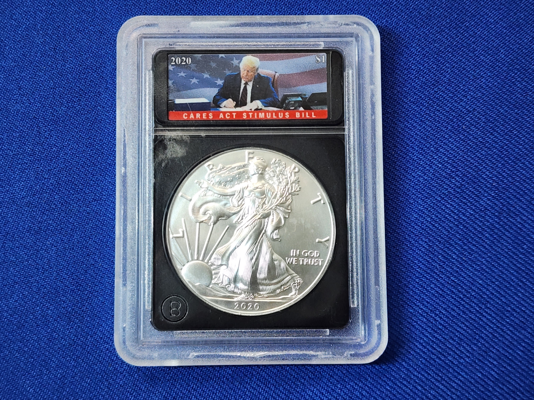 2020 American Silver Eagle - Brilliant Uncirculated - 1 oz Fine Silver in Slab ft. "Cares Act Stimulus Bill"