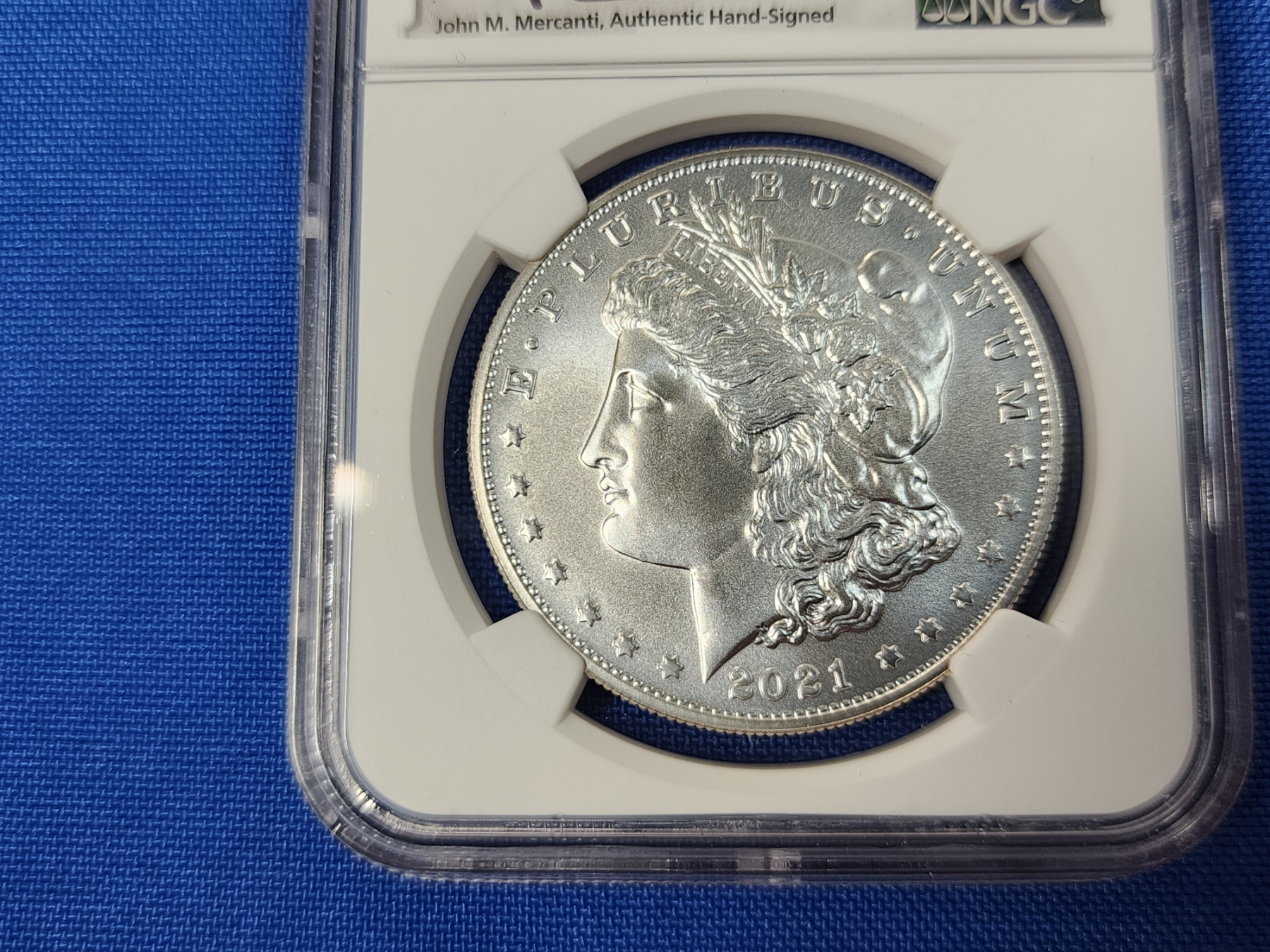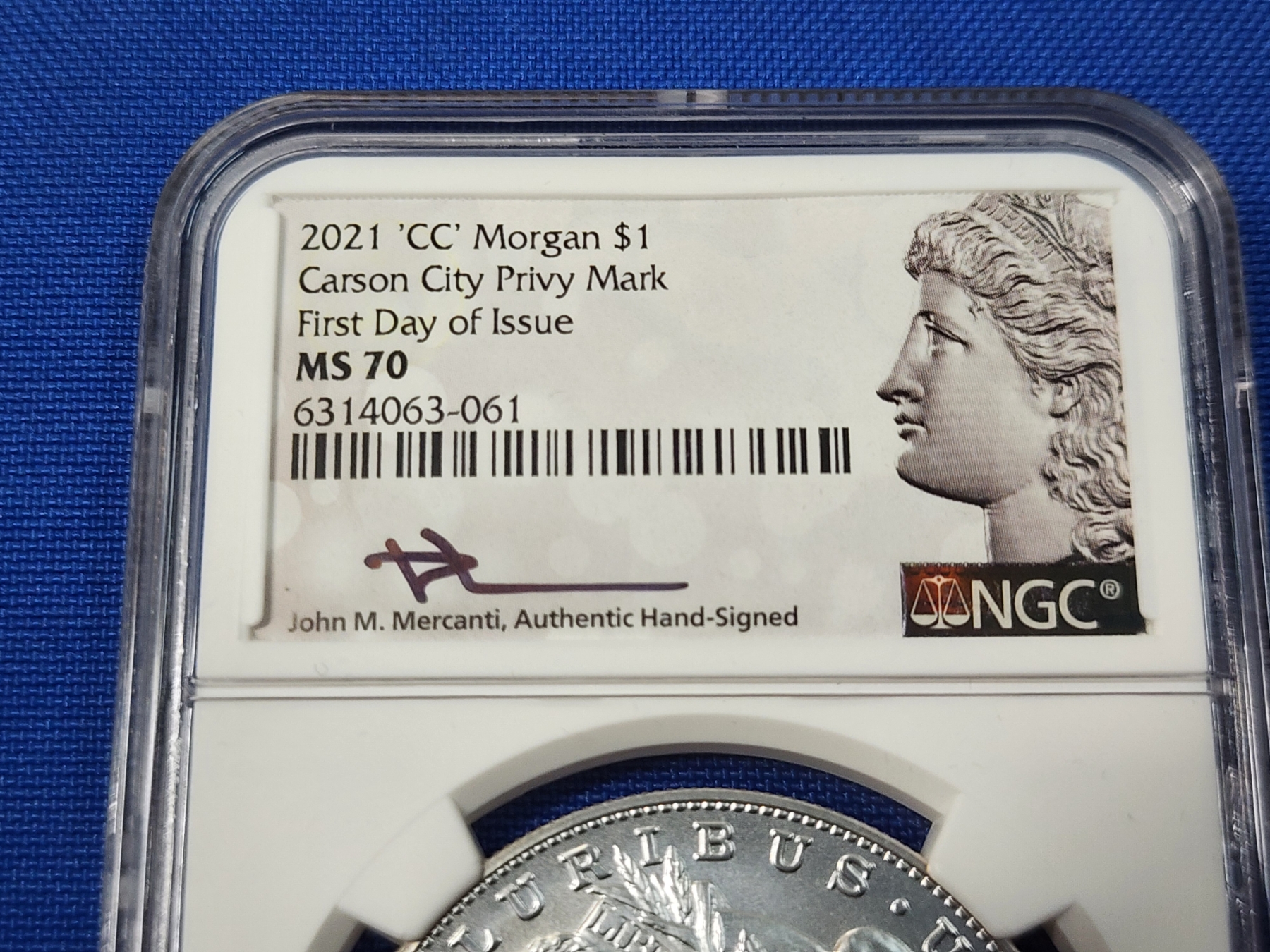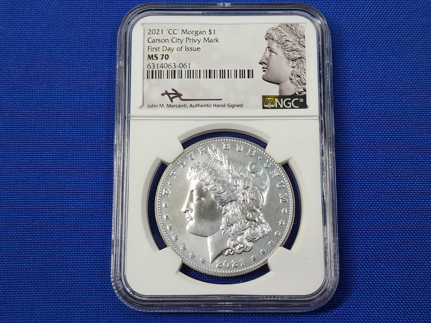 2021 "CC" Morgan Silver Dollar - .999 Silver! - First Day of Issue (FDI) - Signed by Mercanti - Graded by NGC MS 70
