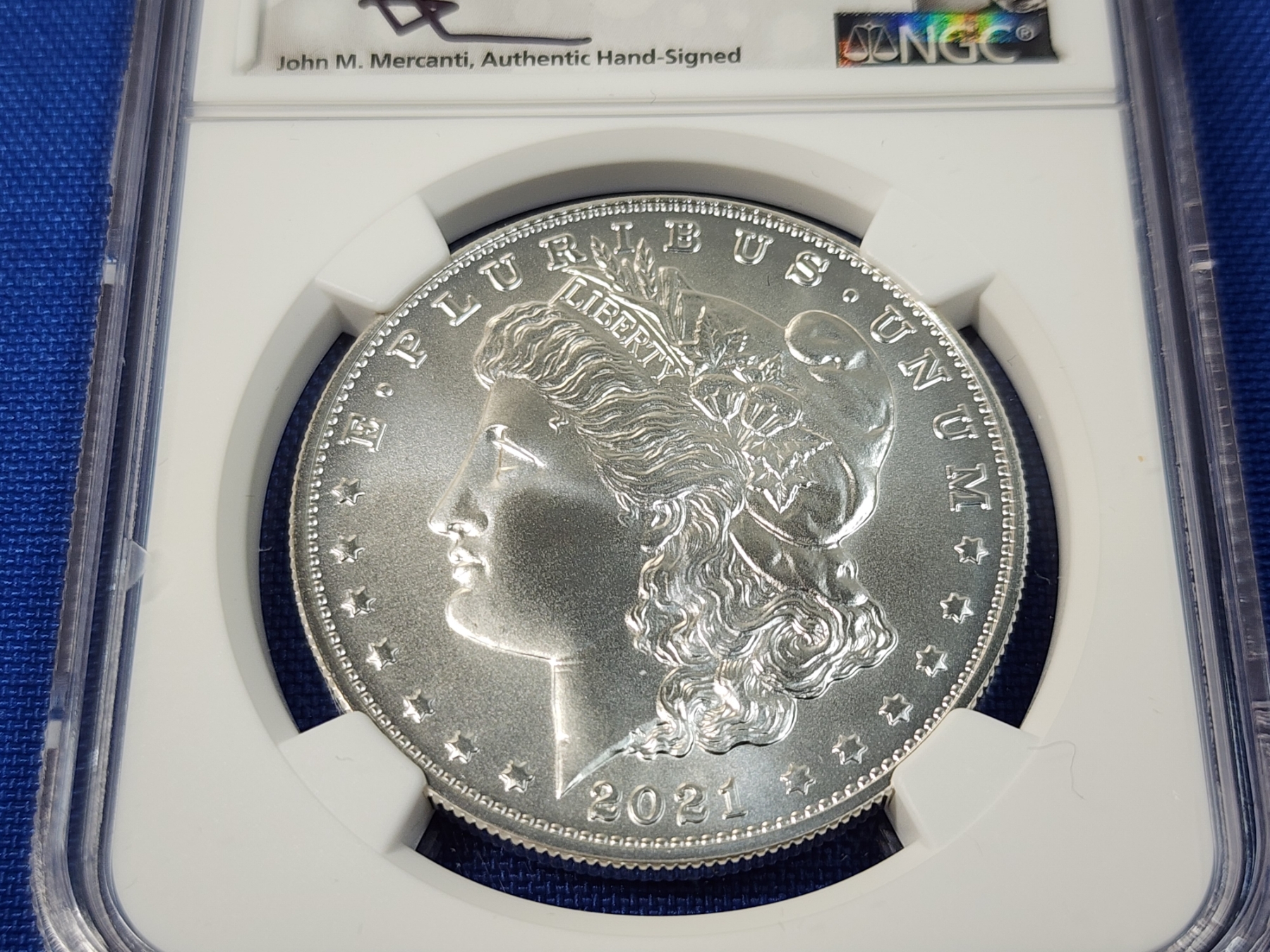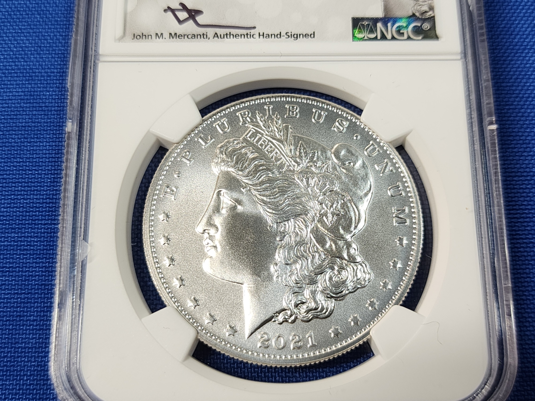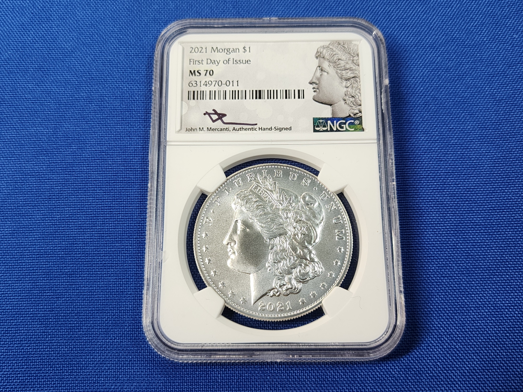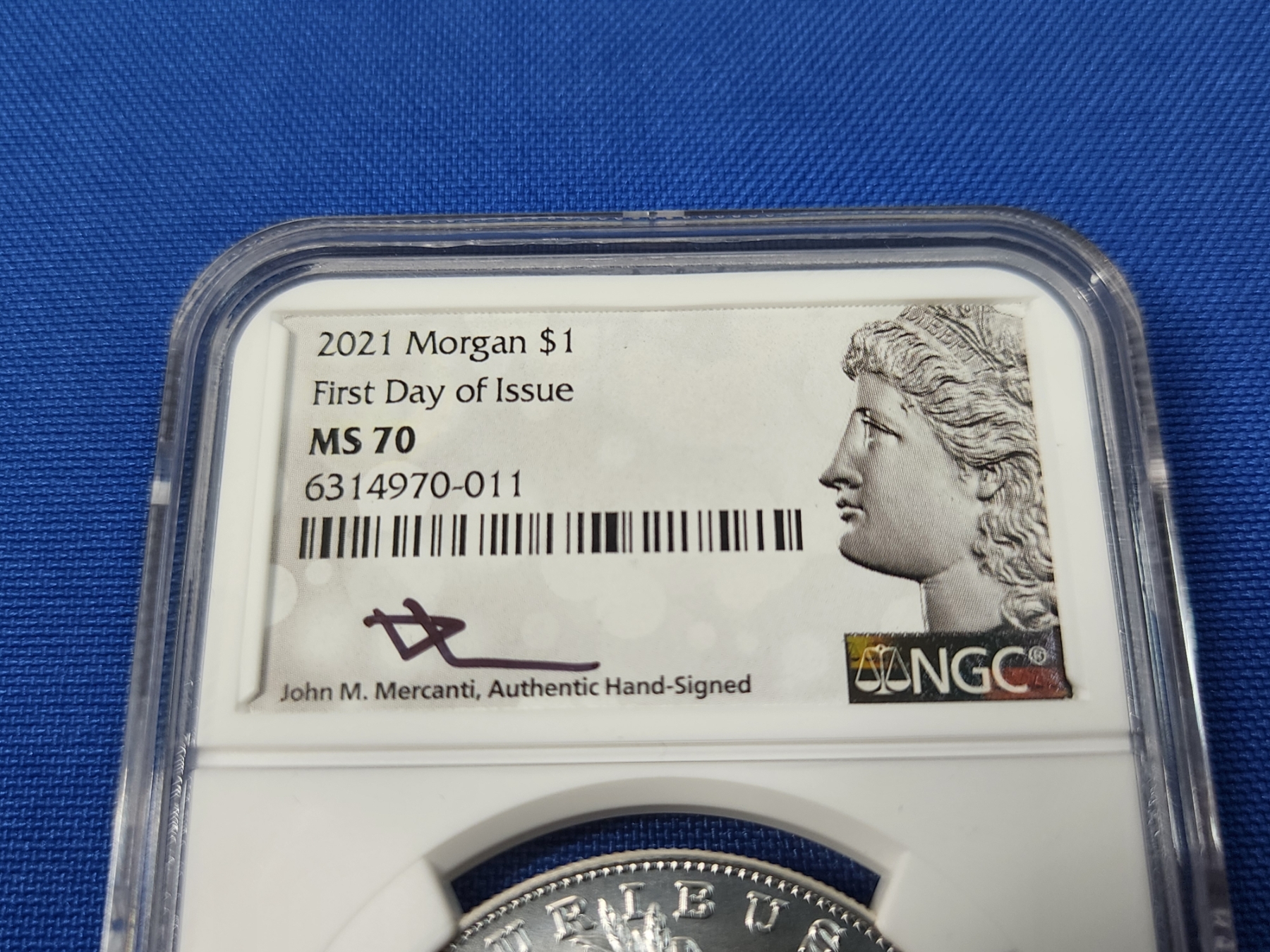 2021 Morgan Silver Dollar - .999 Silver! - First Day of Issue (FDI) - Signed by Mercanti - Graded by NGC MS 70
