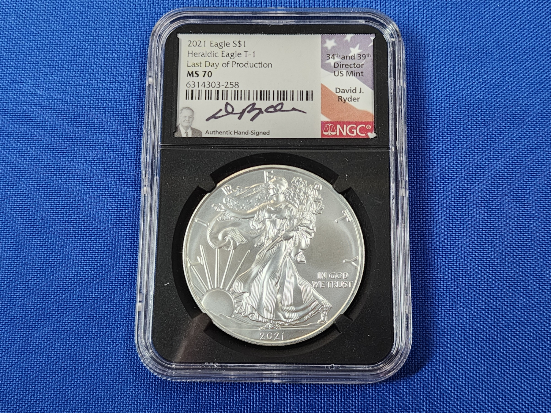 2021 NGC MS 70 American Silver Eagle - 1oz Fine Silver - Heraldic Eagle T-1 - Ryder Signed!
