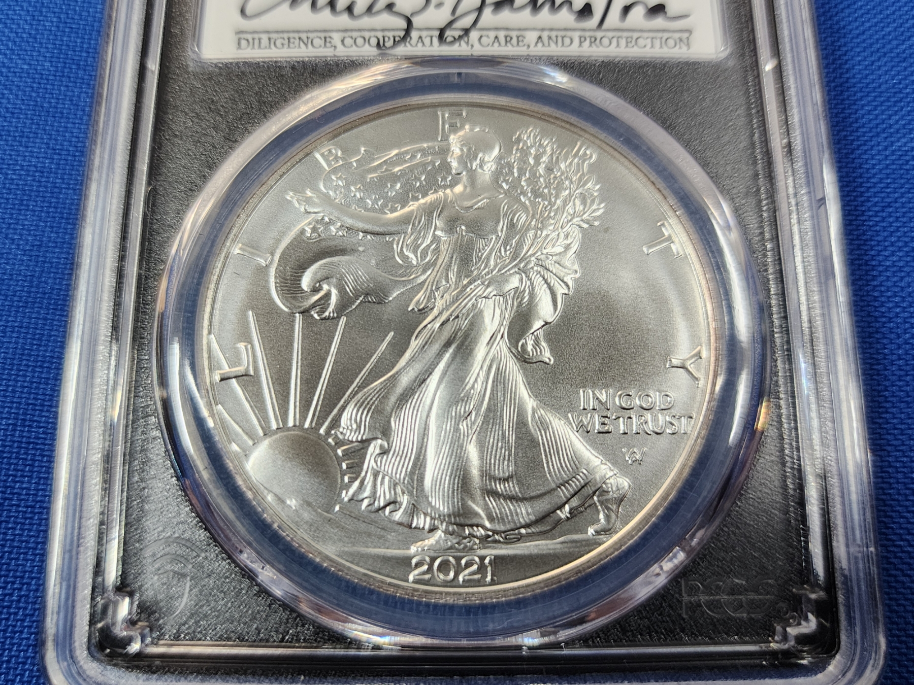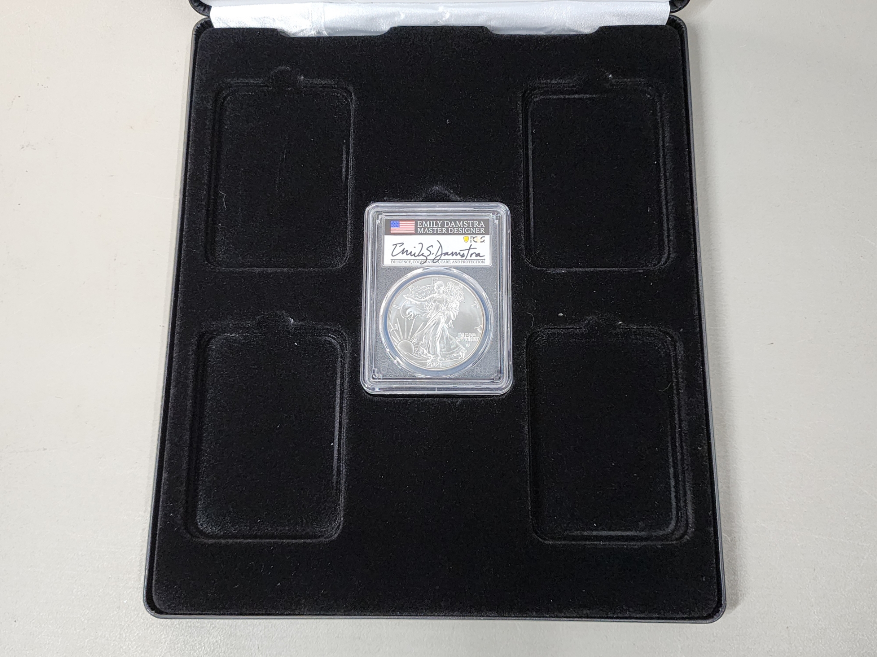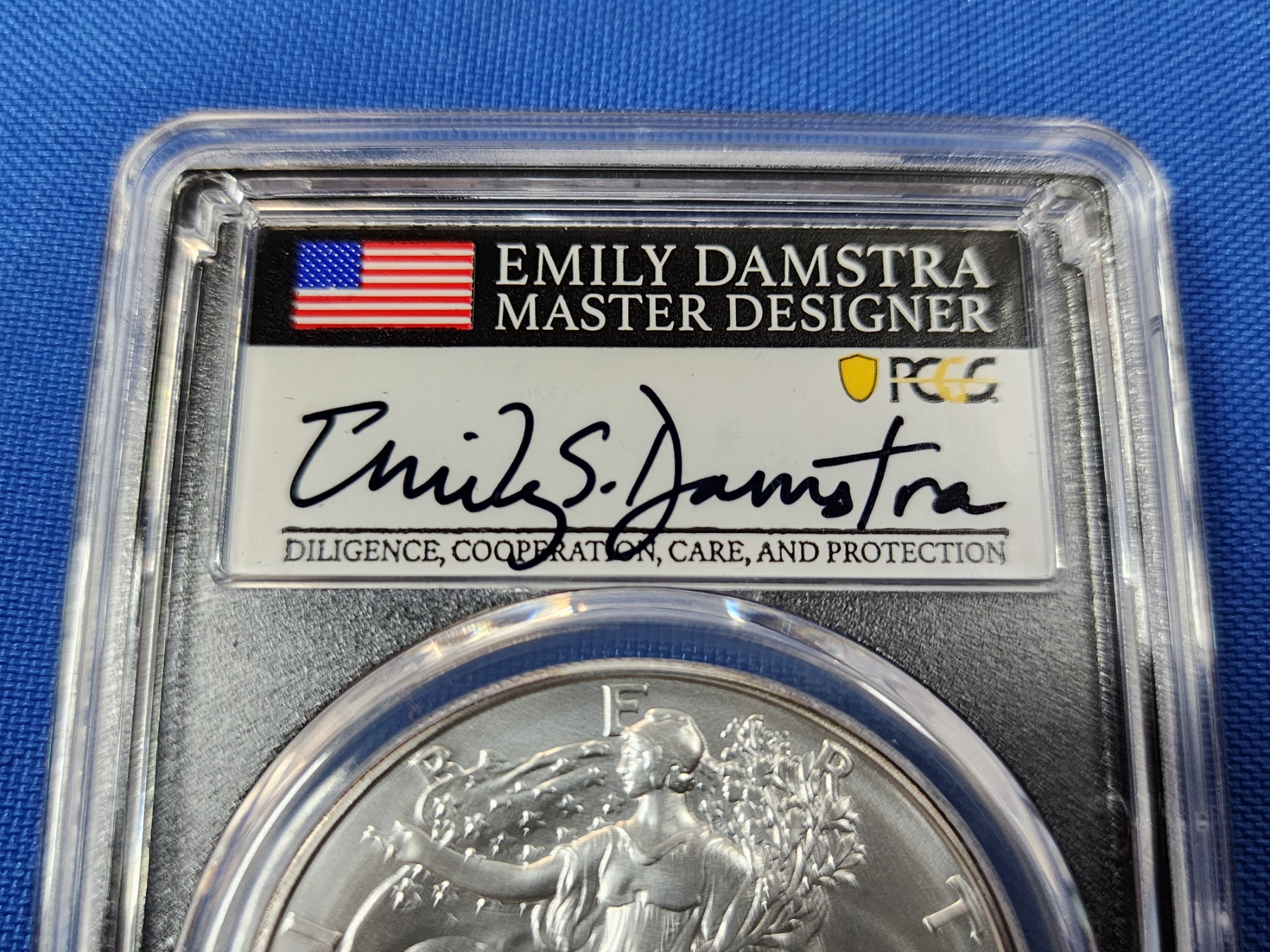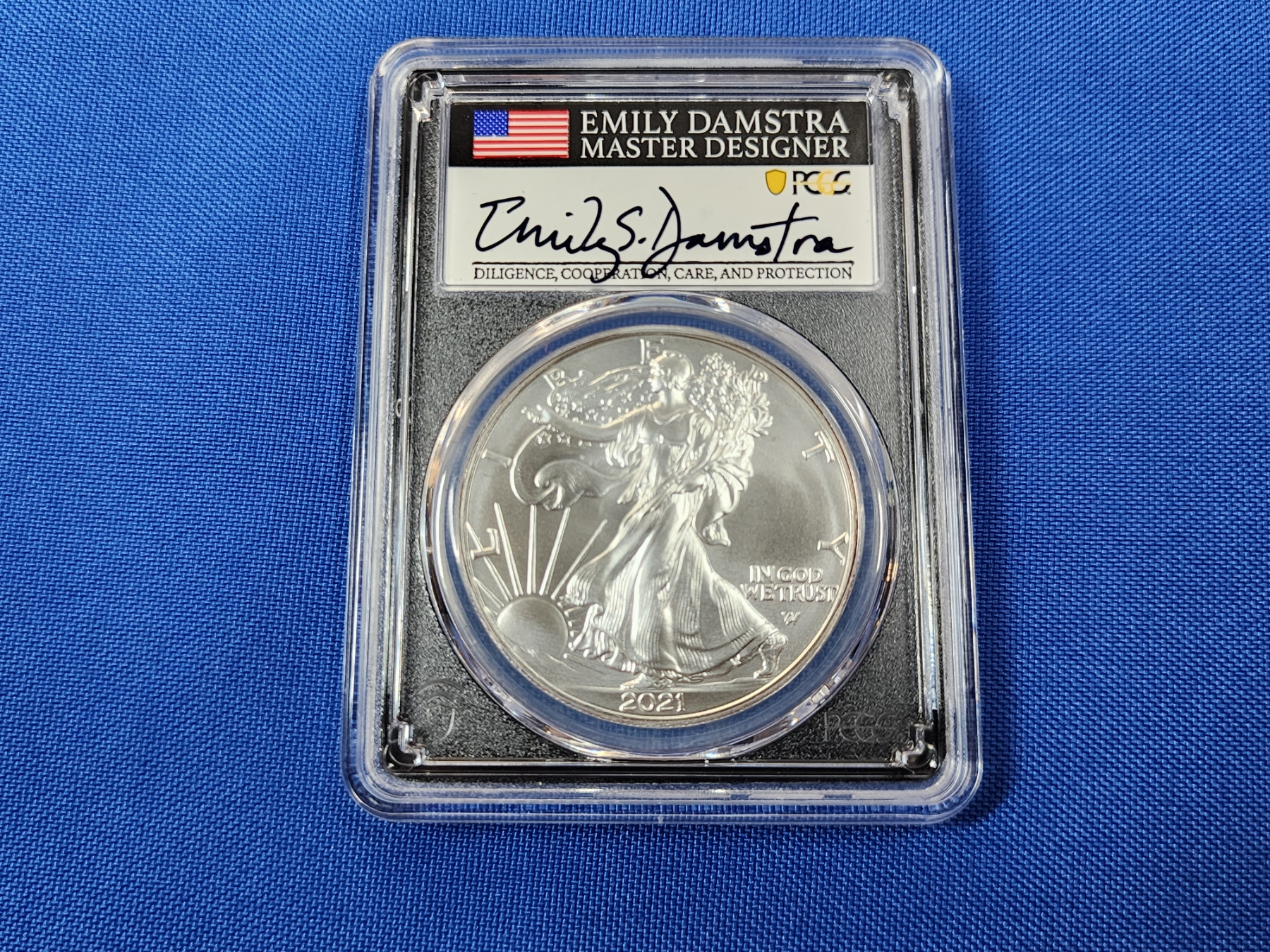 2021 PCGS MS 70 Silver Eagle FDOP Type 2 - 1oz Fine Silver - Signed by Emily Damstra