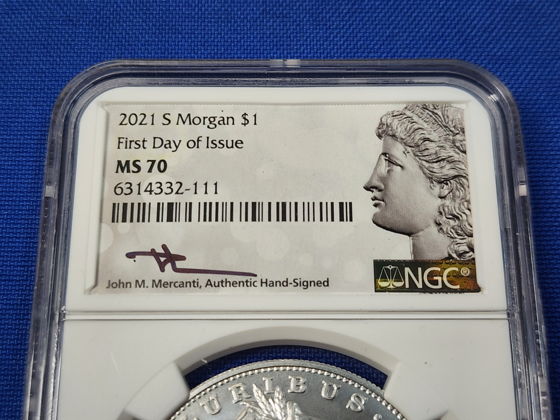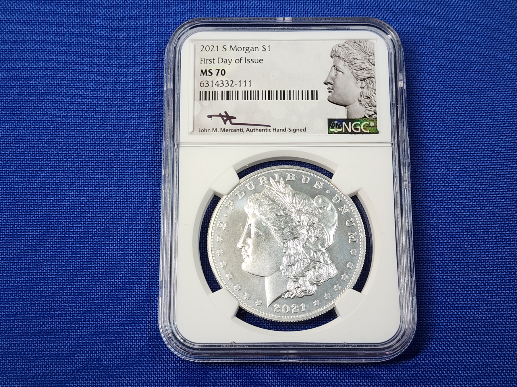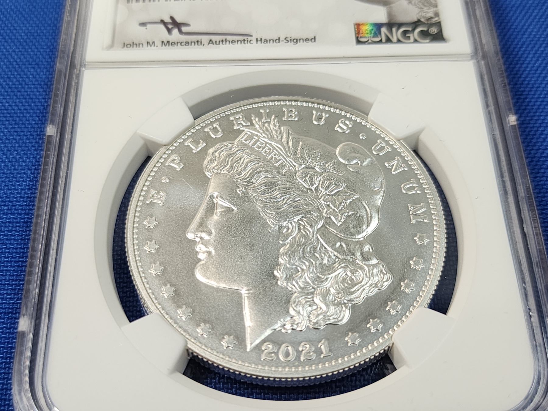 2021-S Morgan Silver Dollar - .999 Silver! - First Day of Issue (FDI) - Signed by Mercanti - Graded by NGC MS 70