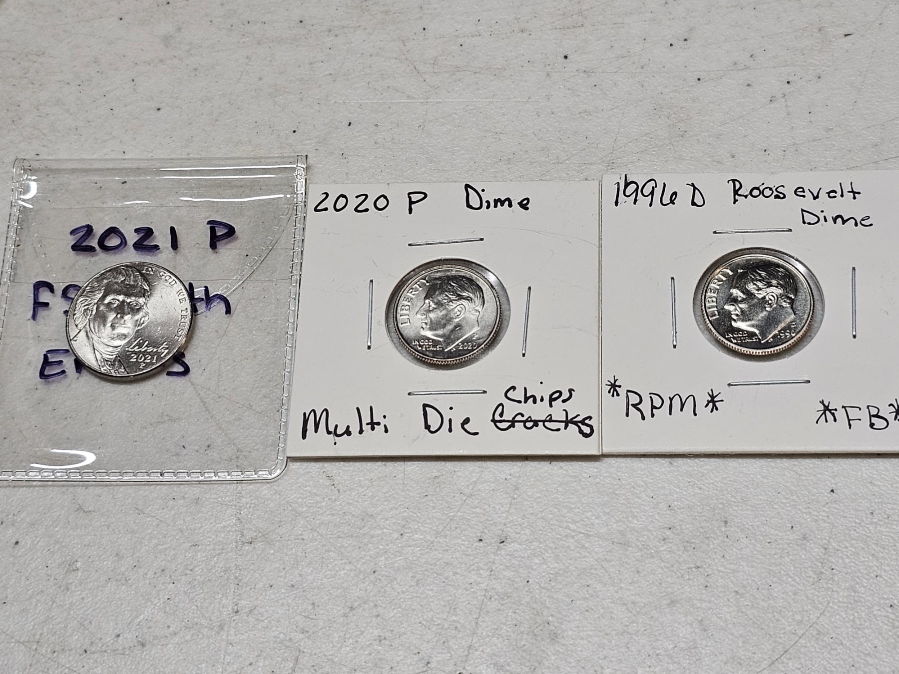 2021P Penny, 1996D Roosevelt Dime, and 2020P Dime with Die Strike Errors - GREAT CONDITION!!! A MUST HAVE FOR ANY COIN COLLECTOR!!! PLACE YOUR BID TODAY!!!