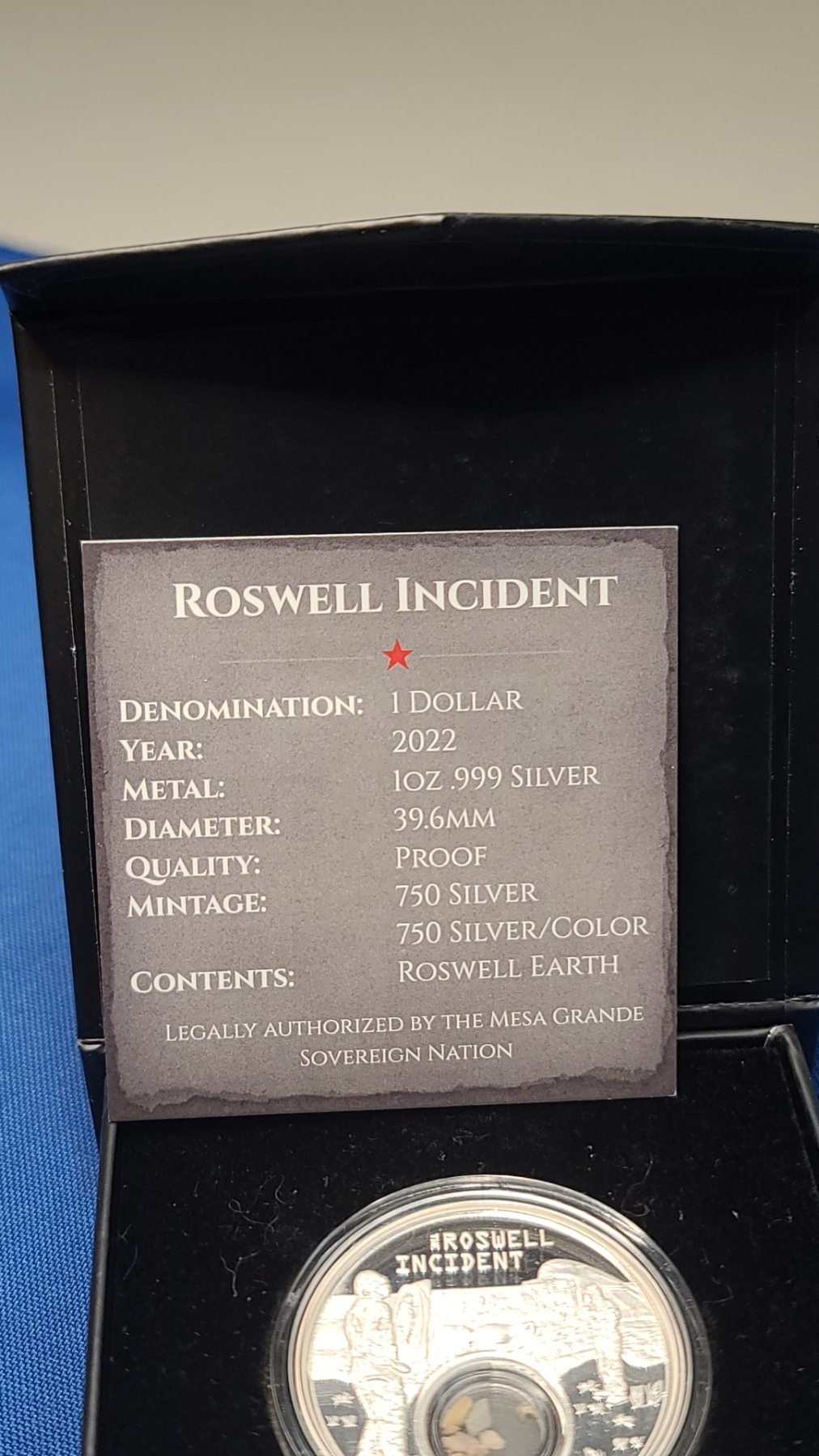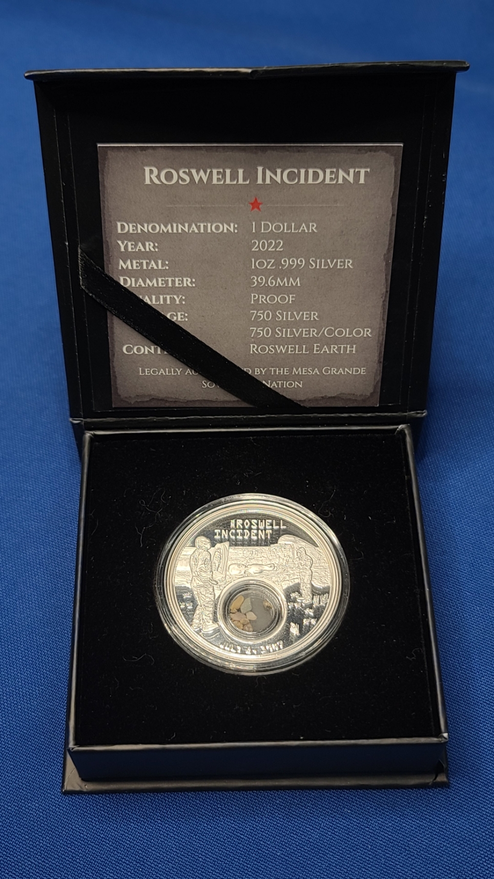 2022 1 Troy Oz .999 Pure Silver Colorized Mesa Grande Roswell Incident Commemorative Coin From The Native American Mint With COA.