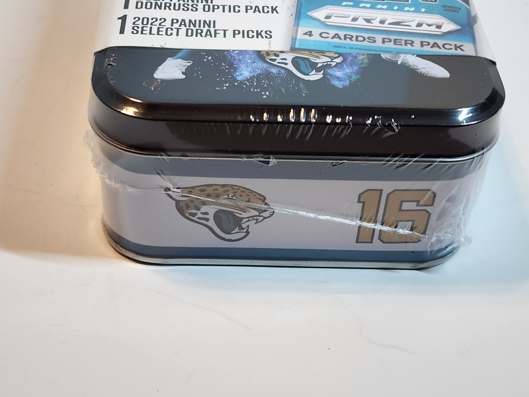 2022 Panini Prizm Trevor Lawrence NFL Collector's Tin Ft. Four Sealed Packs of Football Cards