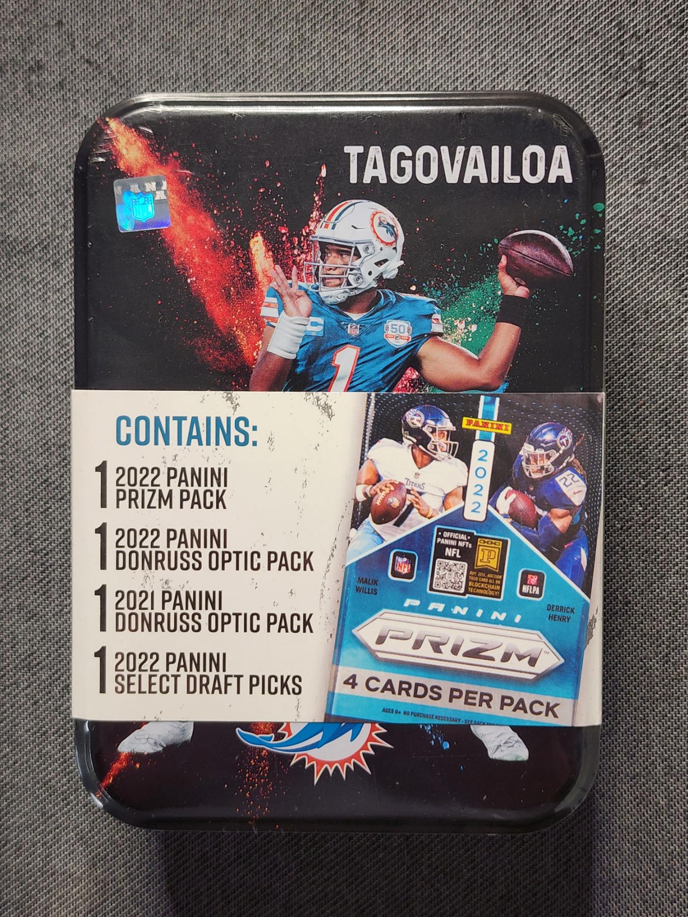 2022 Panini Prizm Tua Tagovailoa NFL Collector's Tin Ft. Four Sealed Packs of Football Cards in Tin