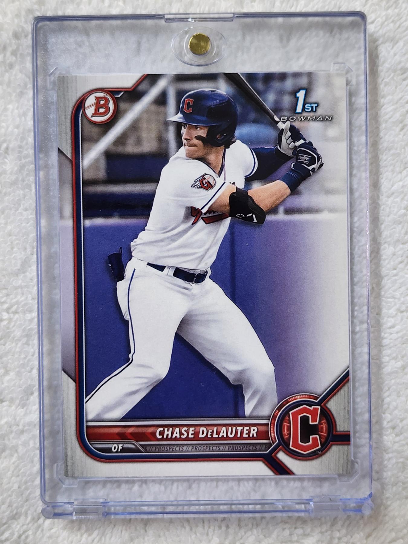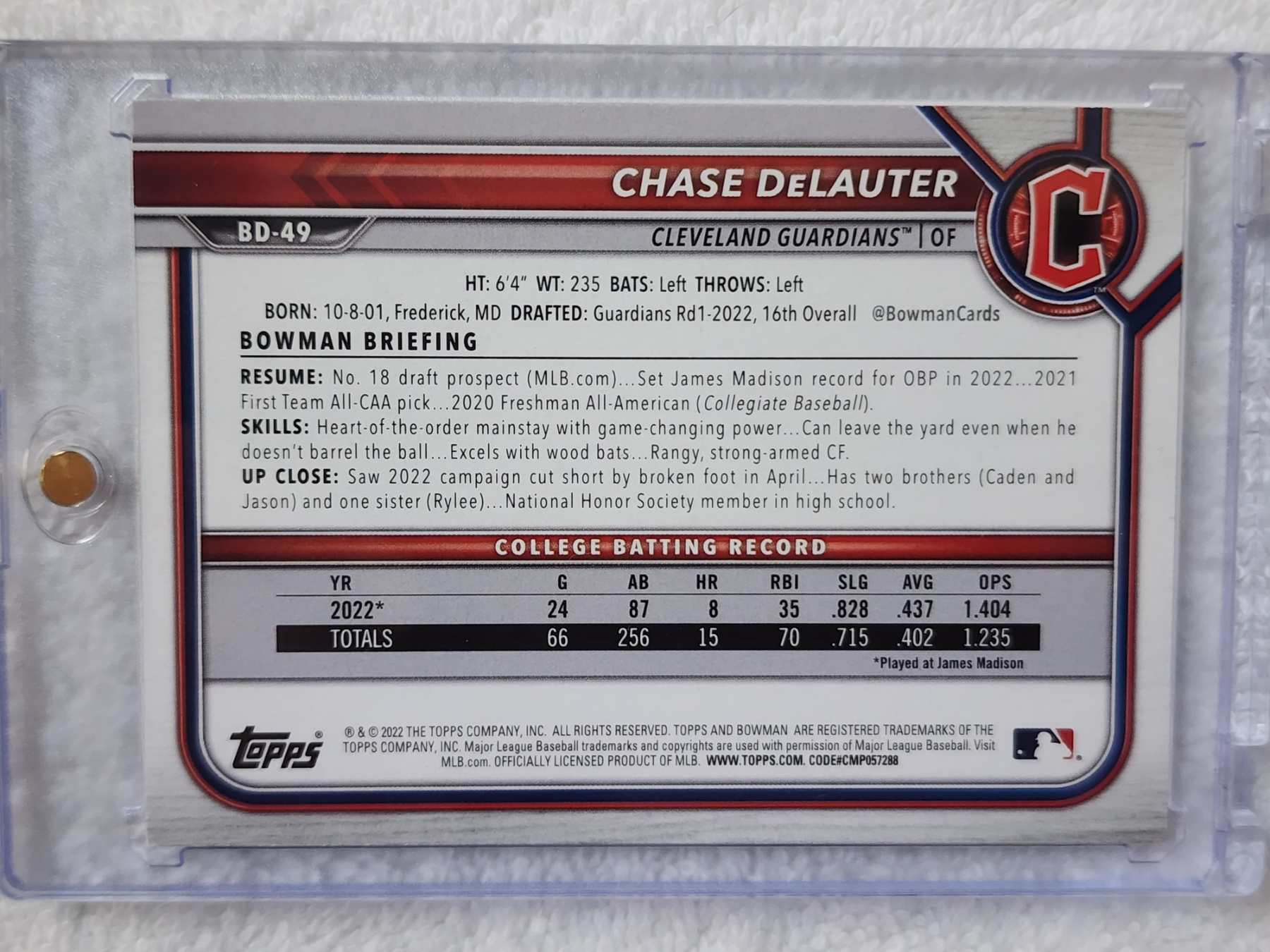2022 Topps Bowman Draft Chrome 1st Chase DeLauter Cleveland Guardians #BD-49 Baseball Trading Card ~ In Nice Protective Display Case