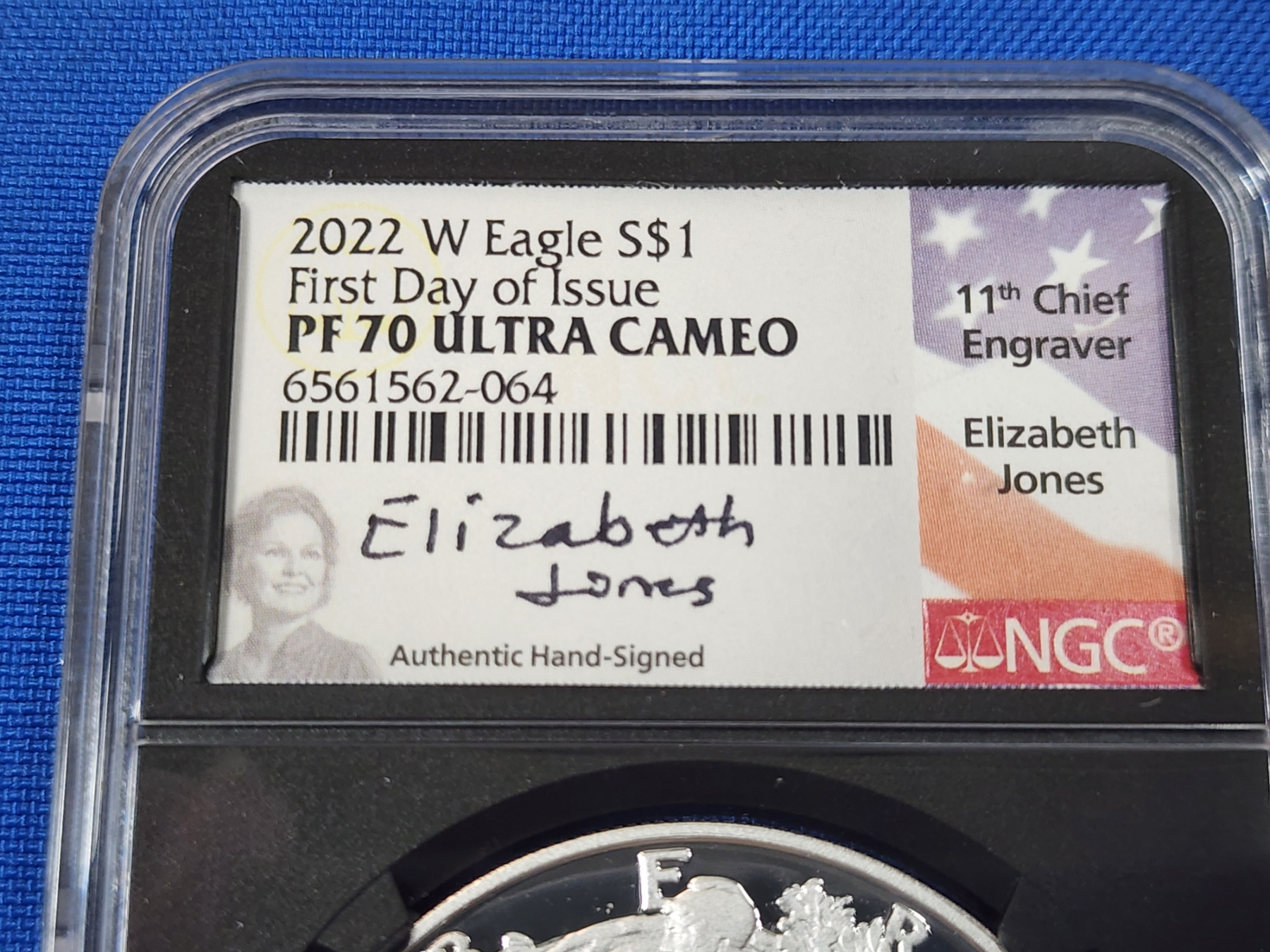 2022-W NGC PF ULTRA CAMEO Silver Eagle FDOI - 1oz Fine Silver - Jones Signed!
