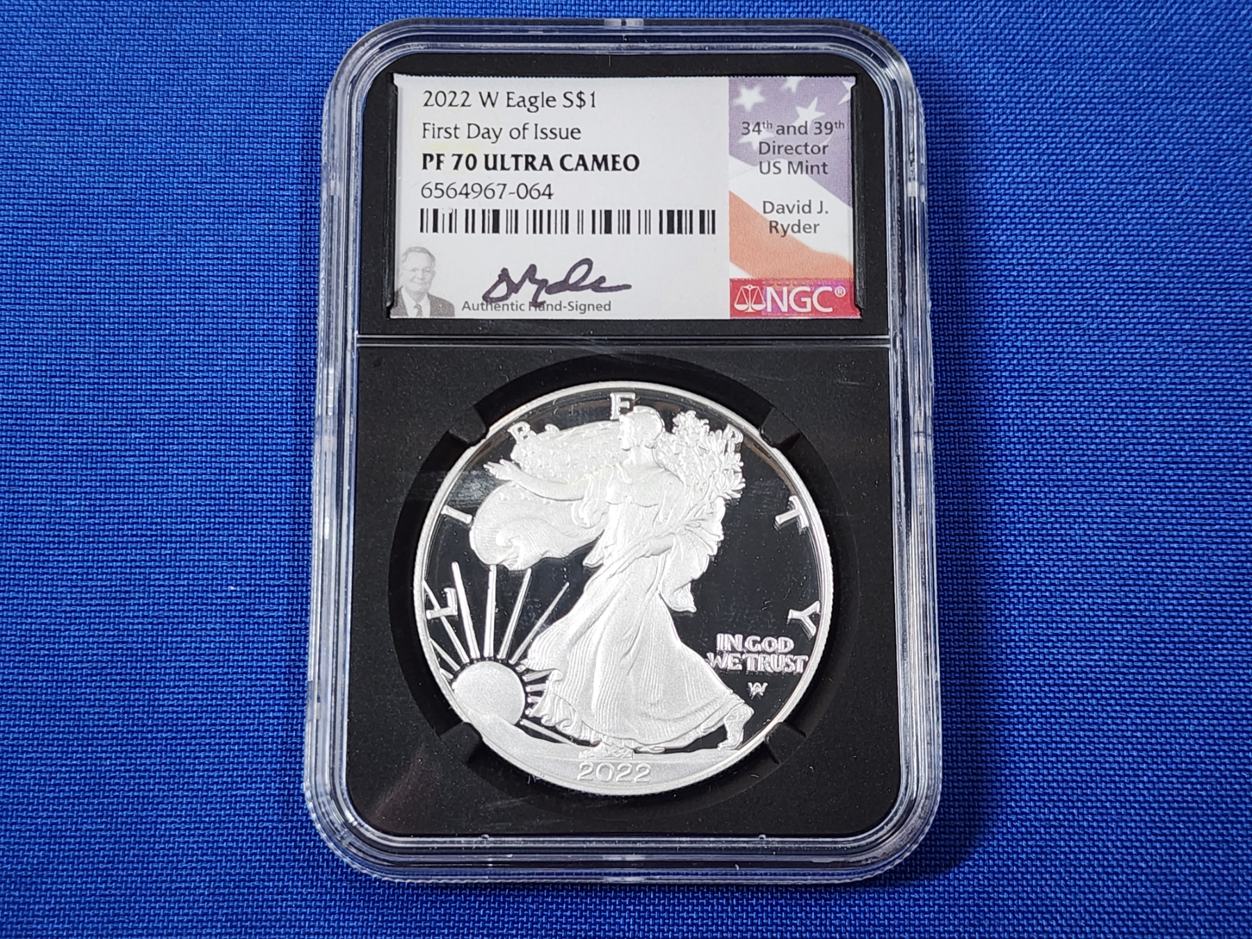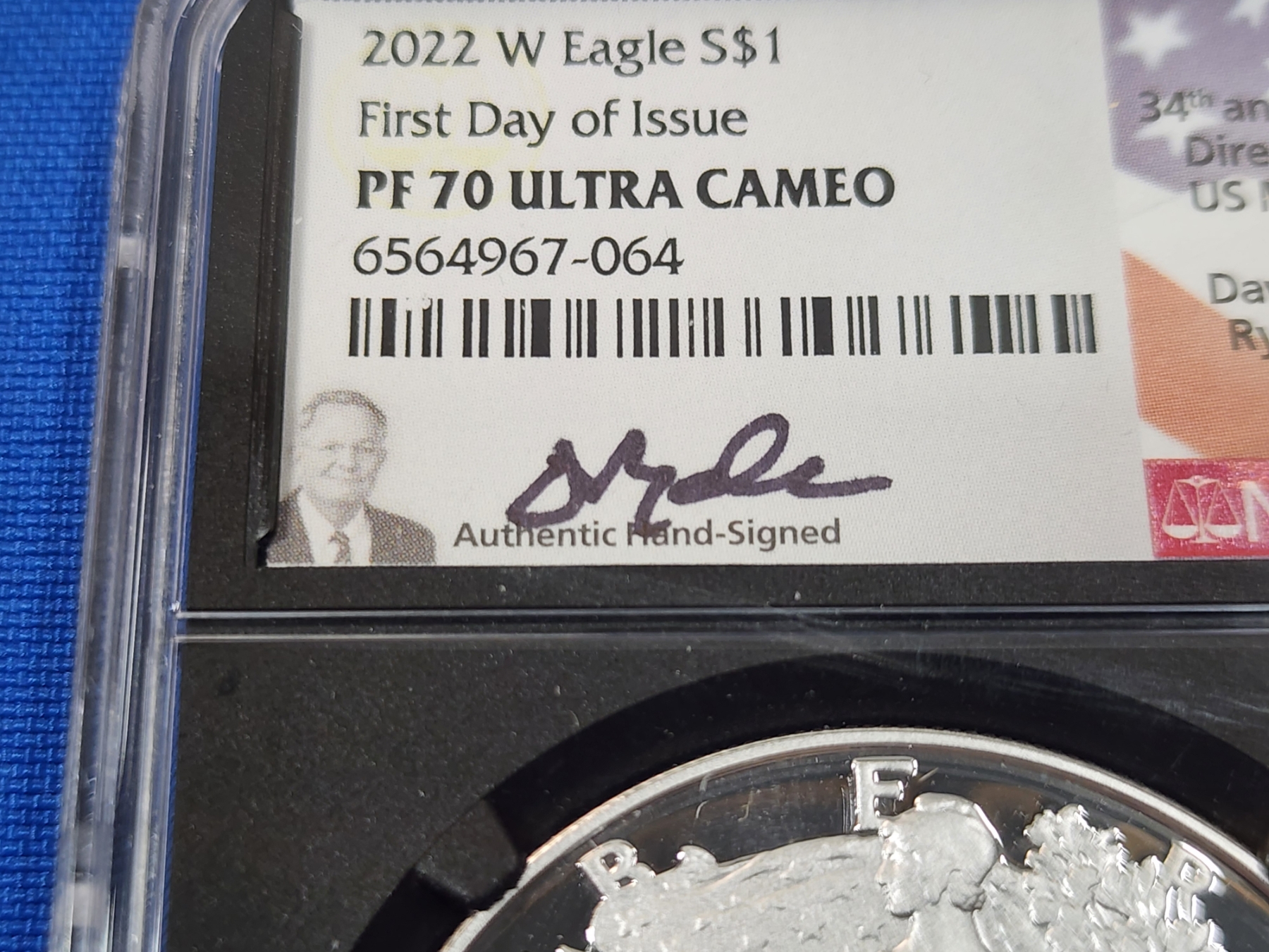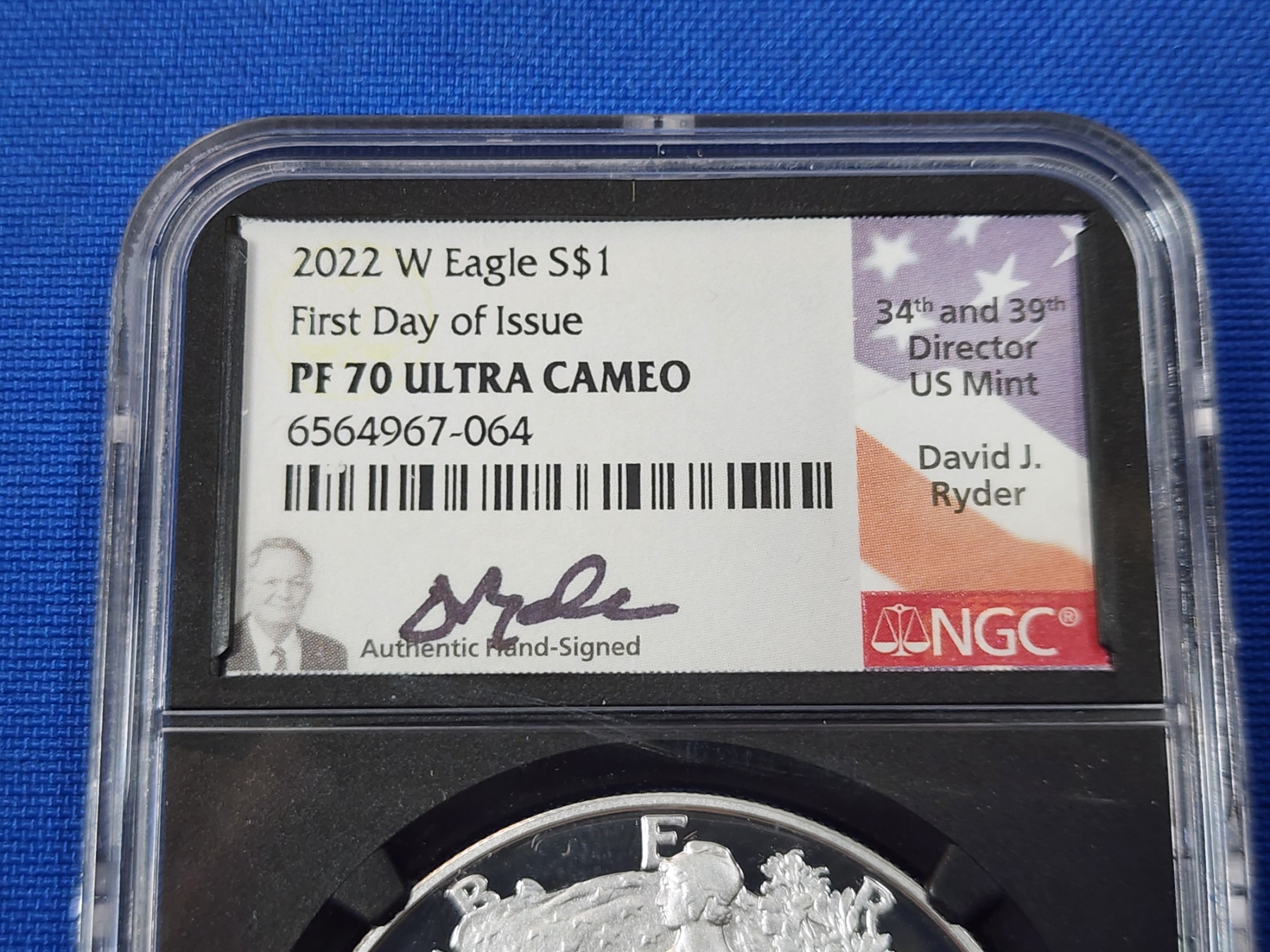 2022-W NGC PF ULTRA CAMEO Silver Eagle FDOI - 1oz Fine Silver - Ryder Signed!